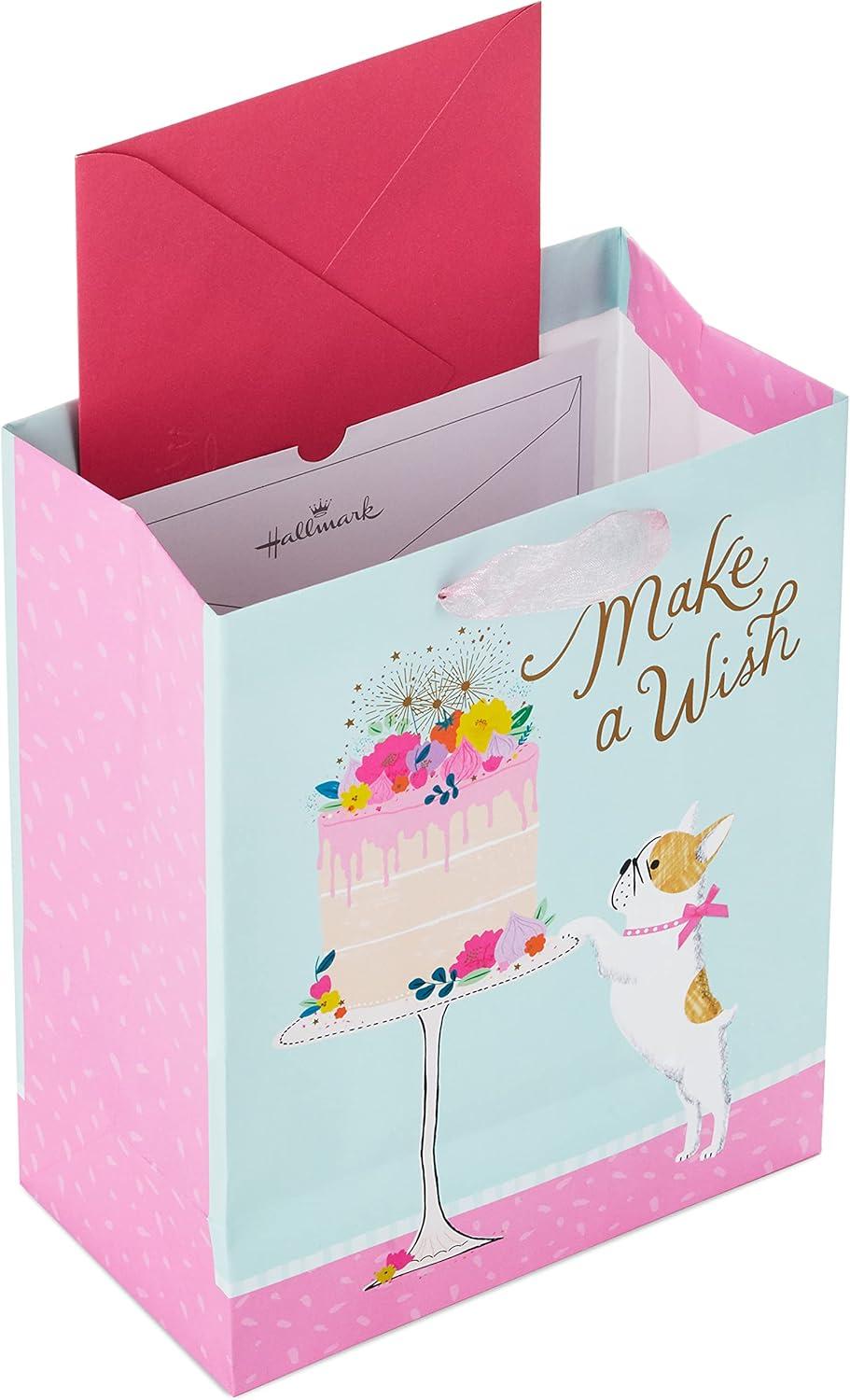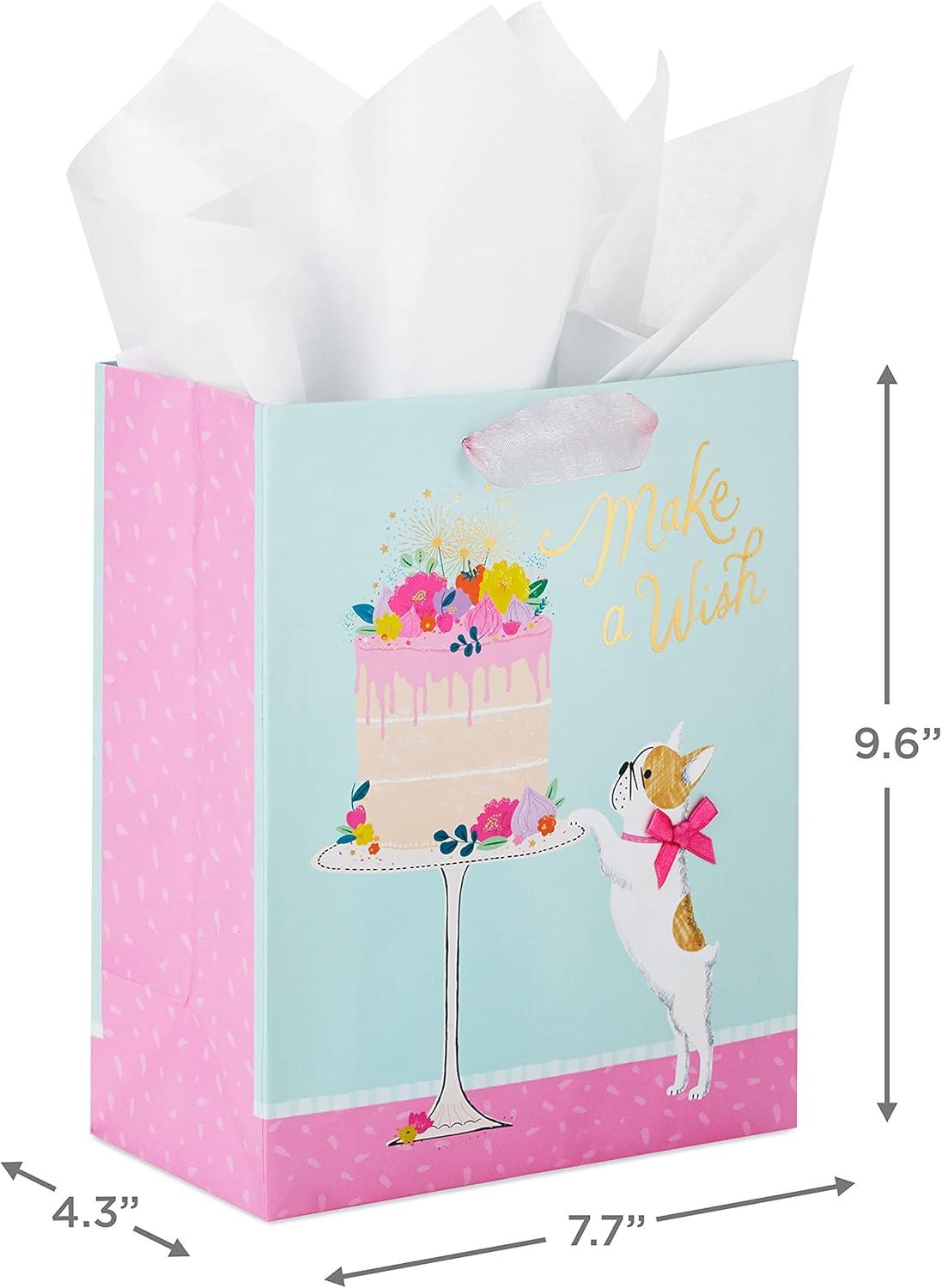 Hallmark Signature Studio 7″ Medium Square Birthday Gift Bag with Tissue Paper (Blush Pink, Gold Foil Happy Birthday) for Wife, Daughter, Sister, Aunt, Teen(Dog with Cake)