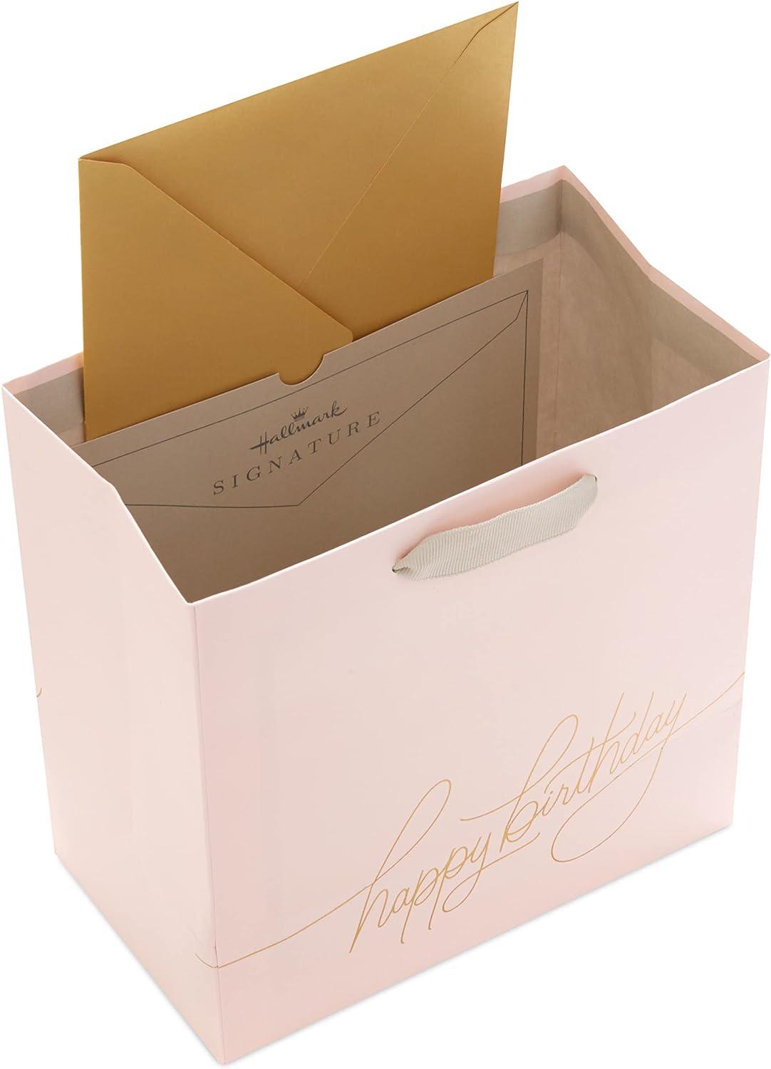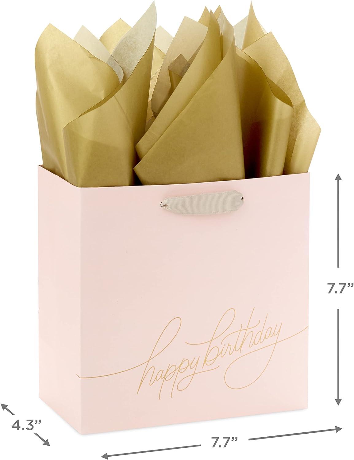 Hallmark Signature Studio 7″ Medium Square Birthday Gift Bag with Tissue Paper (Blush Pink, Gold Foil Happy Birthday) for Wife, Daughter, Sister, Aunt, Teen(Blush Pink with Gold Foil)