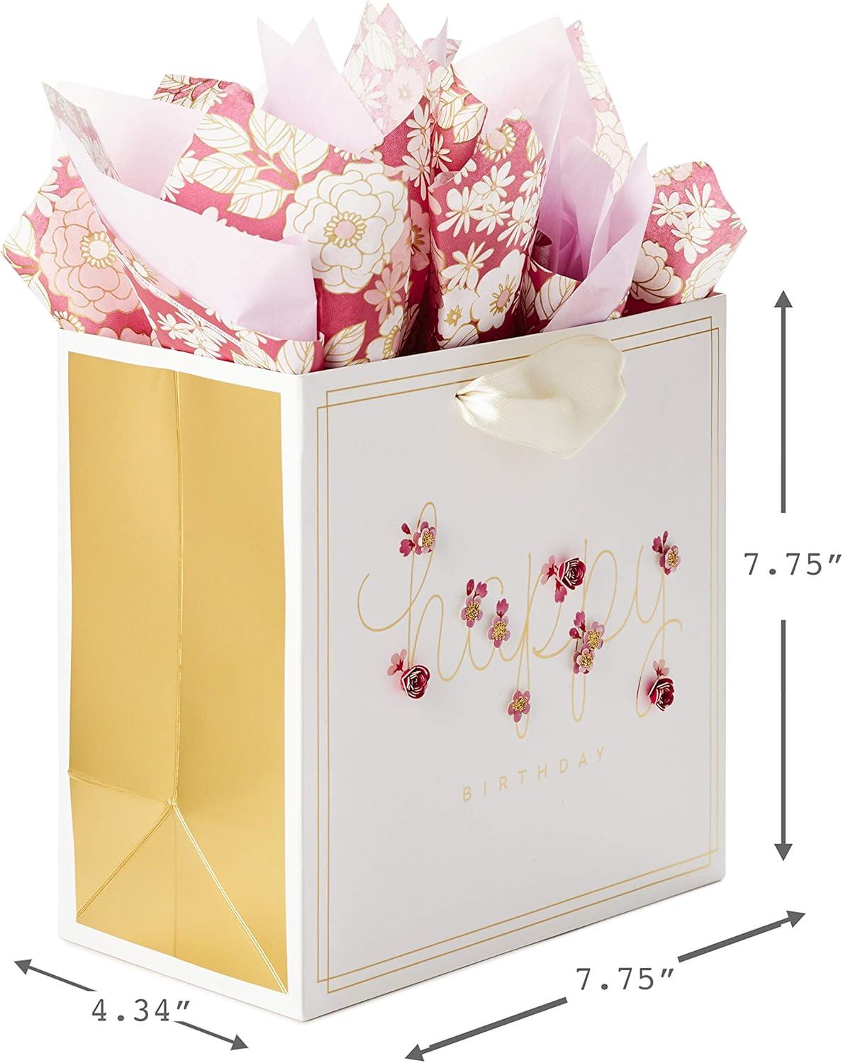 Hallmark Signature Studio 7″ Medium Square Birthday Gift Bag with Tissue Paper (Blush Pink, Gold Foil Happy Birthday) for Wife, Daughter, Sister, Aunt, Teen(Pink Flowers)