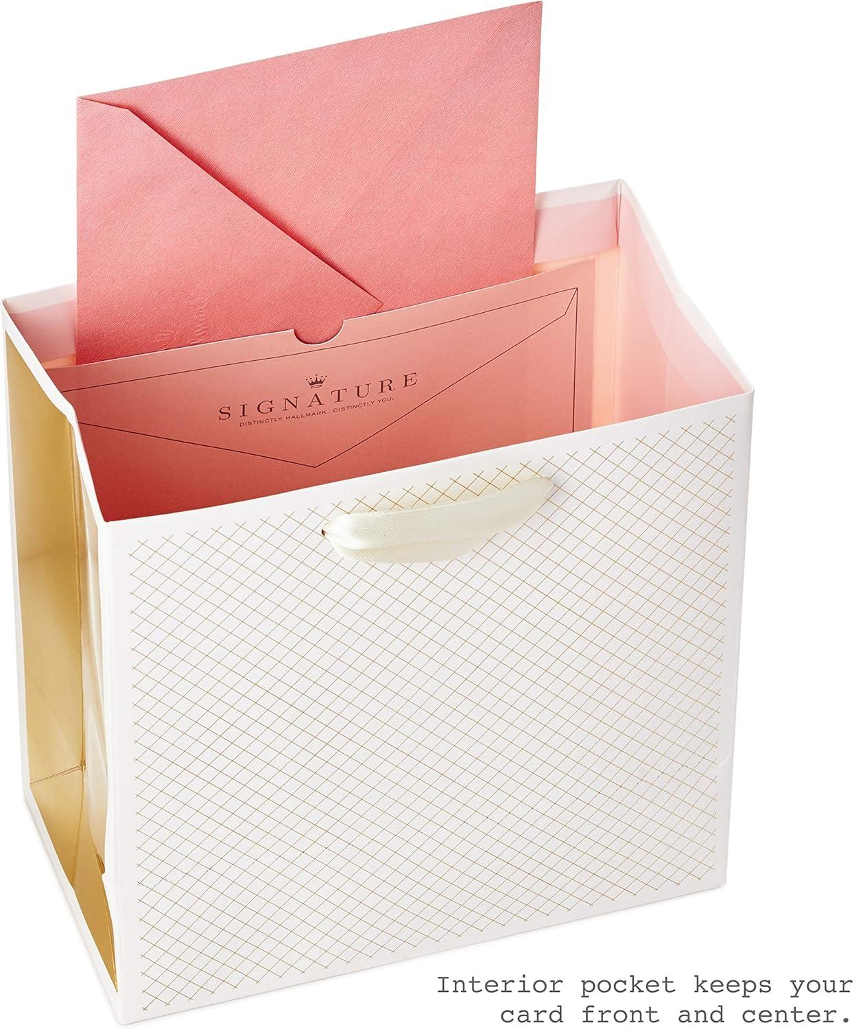 Hallmark Signature Studio 7″ Medium Gift Bag with Tissue Paper (Embossed Hearts, White, Pink, Gold) for Birthdays, Valentine’s Day, Baby Showers, Bridal Showers(Embossed Hearts)