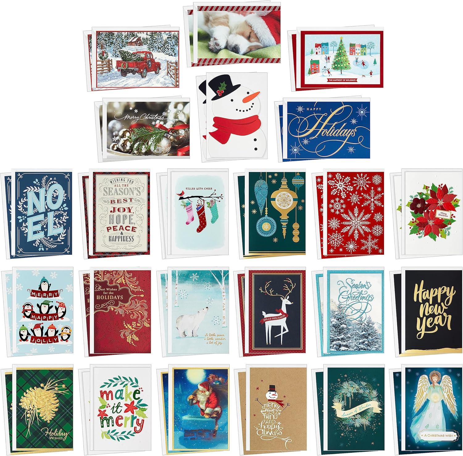 Hallmark Boxed Christmas Card Assortment with Keepsake Box (48 Cards and Envelopes) Angels, Santa, Penguins, New Year, Snowmen, Ornaments(Bulk Card Assortment Box)