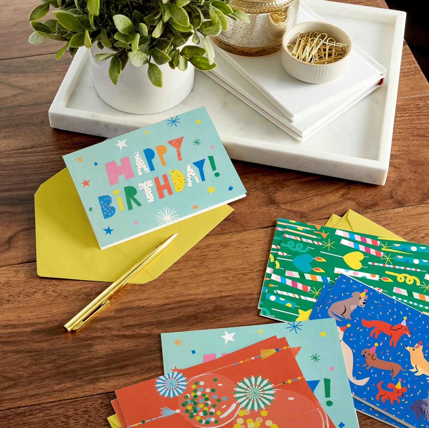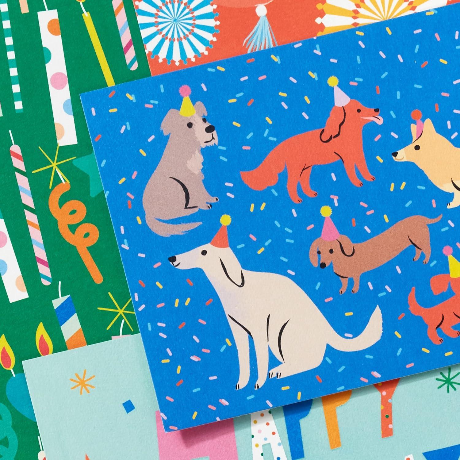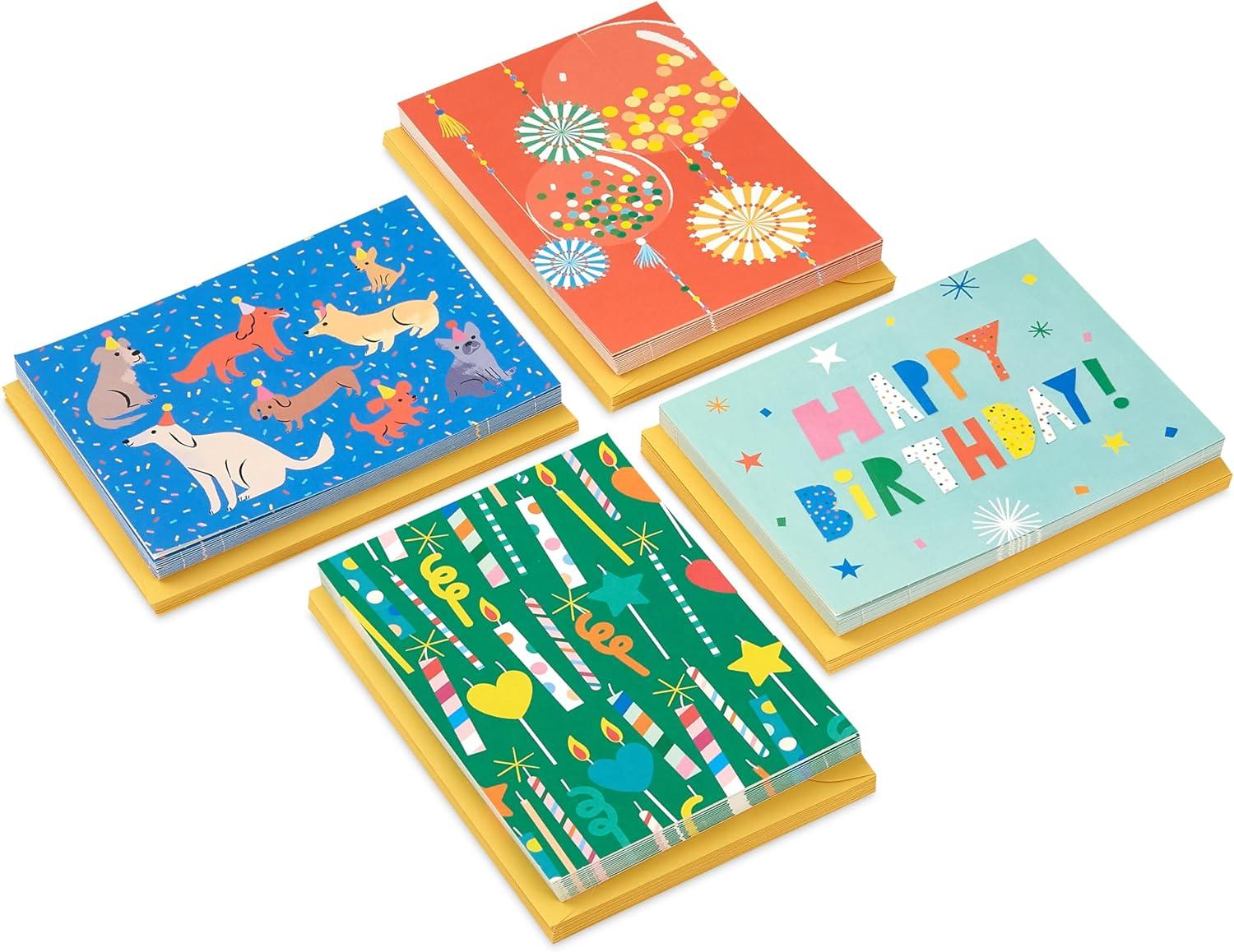Hallmark Bulk Birthday Note Card Assortment (48 Blank Cards with Envelopes) Dogs, Candles, Balloons(Dogs Candles Balloons)