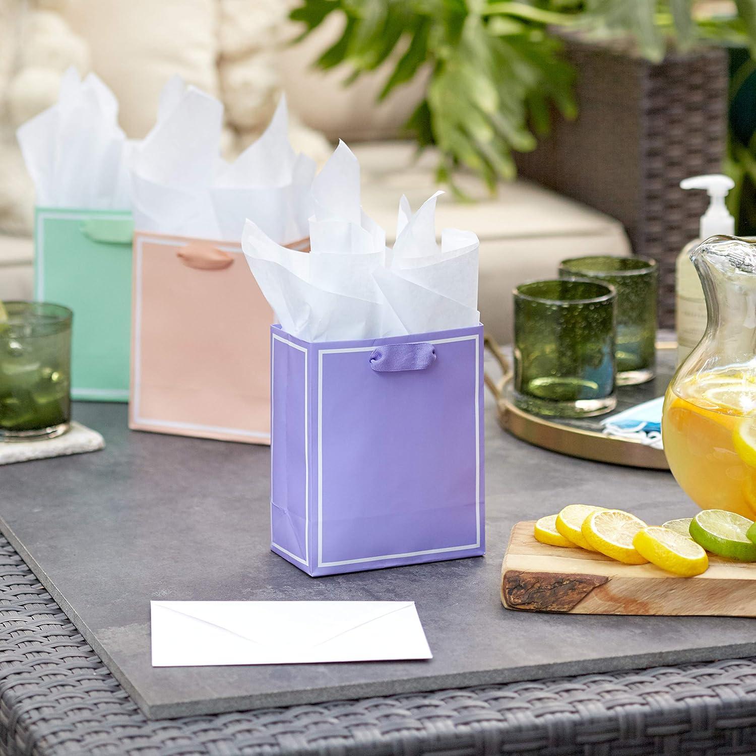 Hallmark 6″ Small Solid Color Gift Bags – Pack of 5 in Red, Green, Blue, Light Pink, Hot Pink for Birthdays, Holidays, Parties or Any Occasion(Light Purple Pink Blue Orange Green)