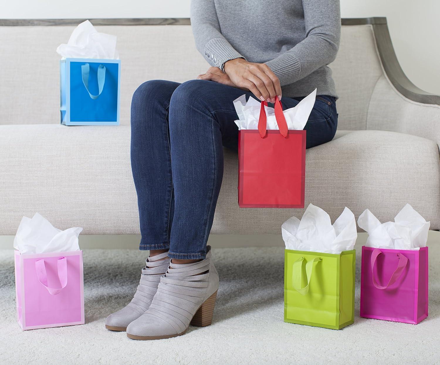 Hallmark 6″ Small Solid Color Gift Bags – Pack of 5 in Red, Green, Blue, Light Pink, Hot Pink for Birthdays, Holidays, Parties or Any Occasion(Pink Purple Blue Green)