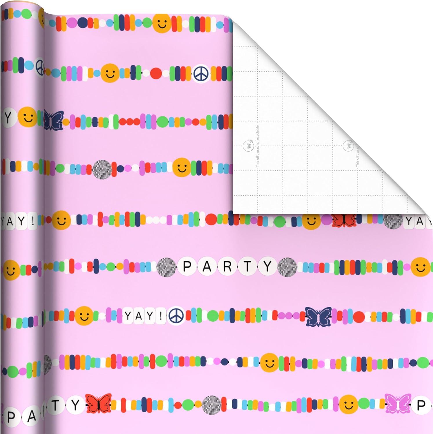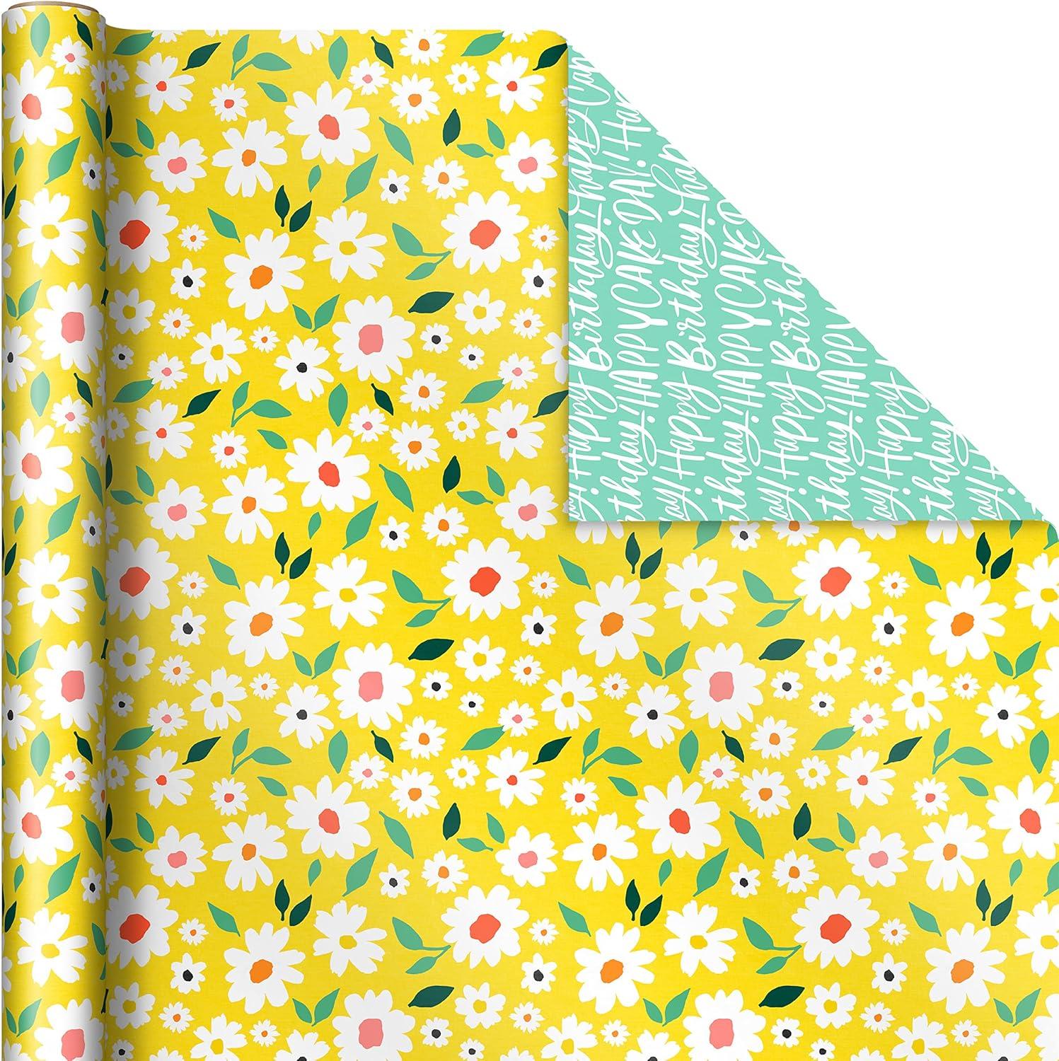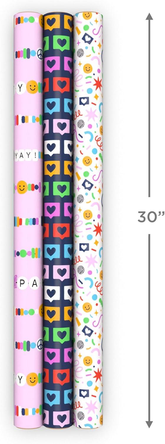Hallmark Reversible Spring Wrapping Paper (3 Rolls: 75 Sq. Ft. Ttl) Floral, Lemons, Bright Abstract for Easter, Birthdays, Mother’s Day, Bridal Showers, Baby Showers(Friendship Bracelet)