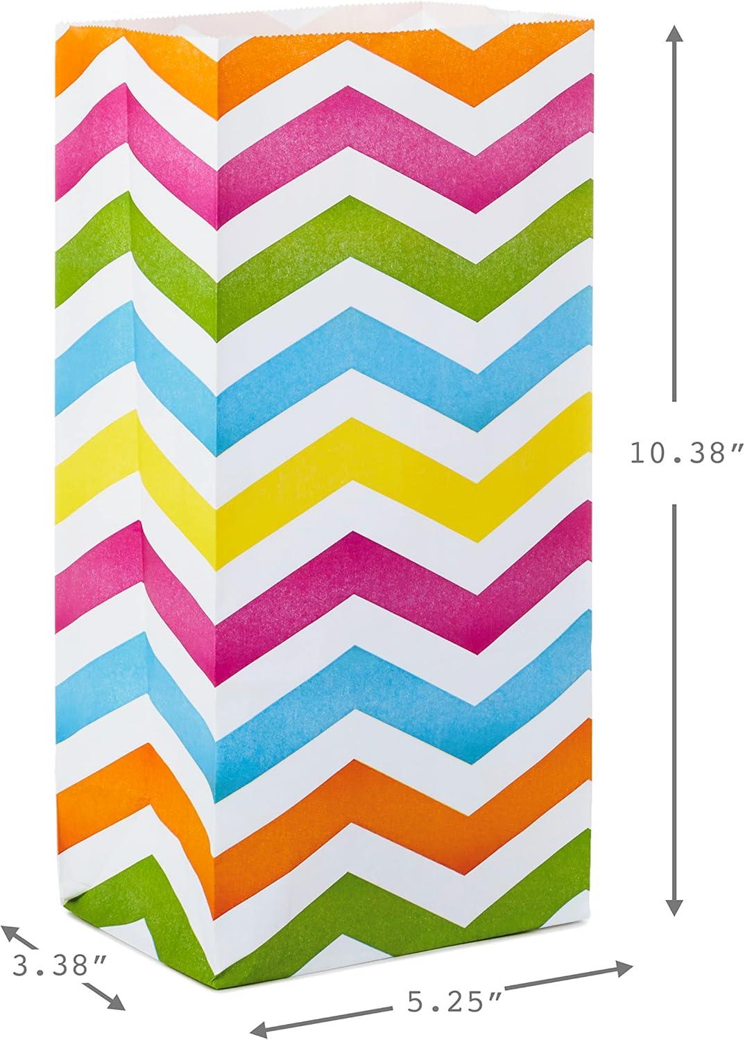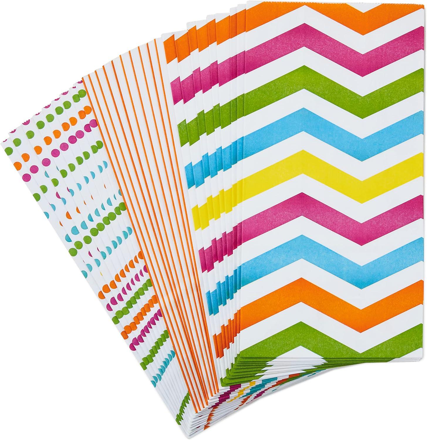 Hallmark Solid Color Party Favor and Wrapped Treat Bags (30 Ct., 5 Each of Blue, Red, Green, Yellow, Orange, Pink) for Birthdays, Baby Showers, Kids Crafts and Activities, May Day, Care Packages(Chevron Polka Dots Vertical Stripes)