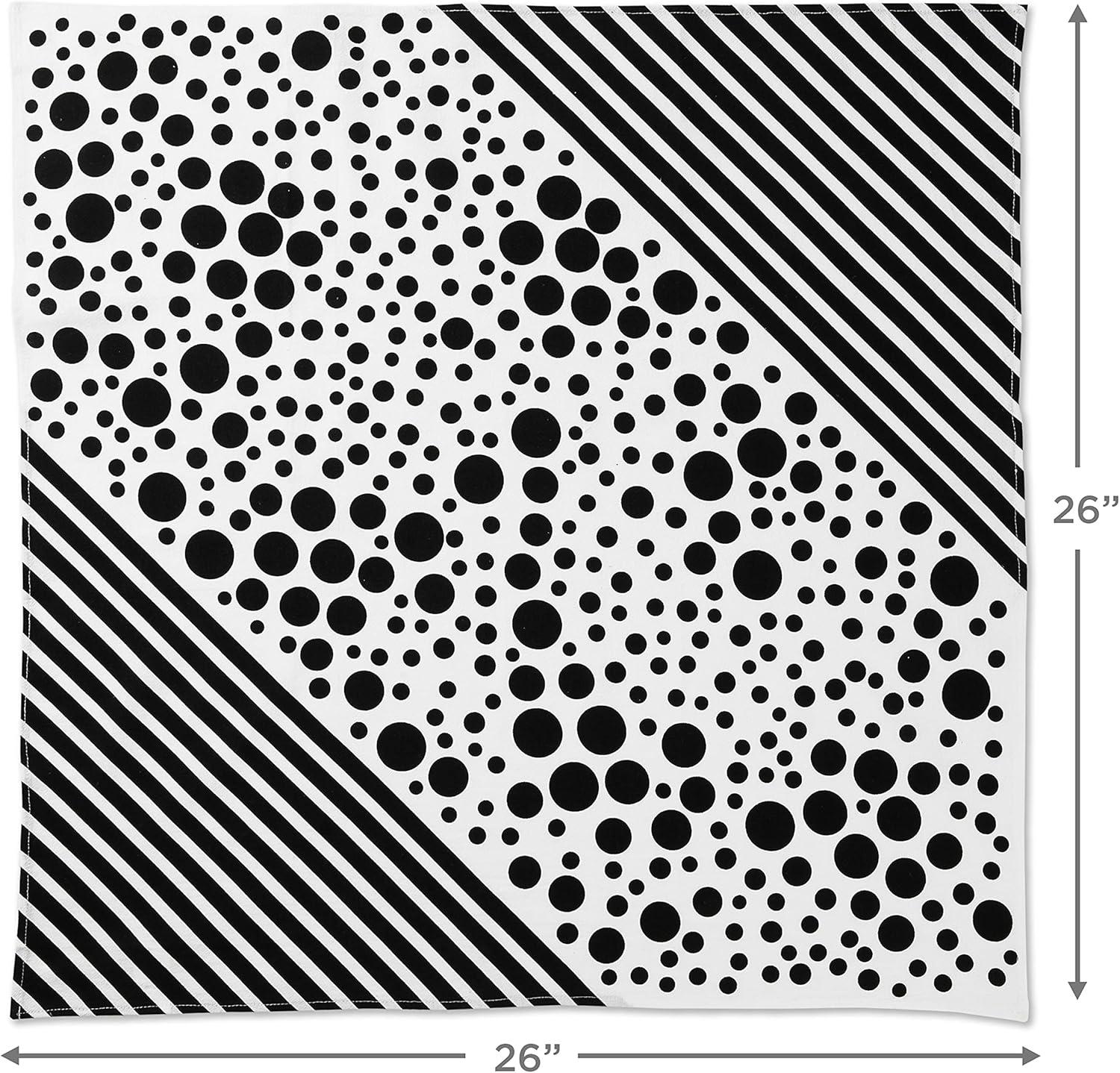 Hallmark Reusable Fabric Gift Wrap (1 Sheet: 26″ x 26″ Pink and Orange Modern Floral) for Easter, Birthdays, Bridal Showers, Mother’s Day and More(Natural White with Black Polka Dots and Stripes)