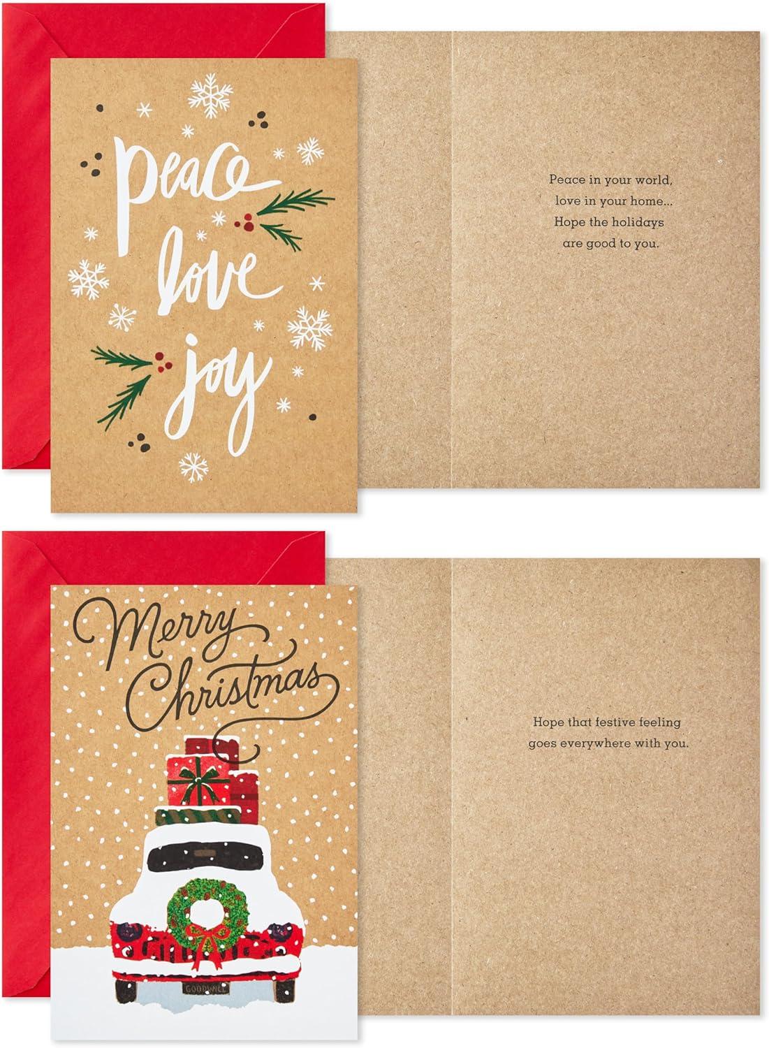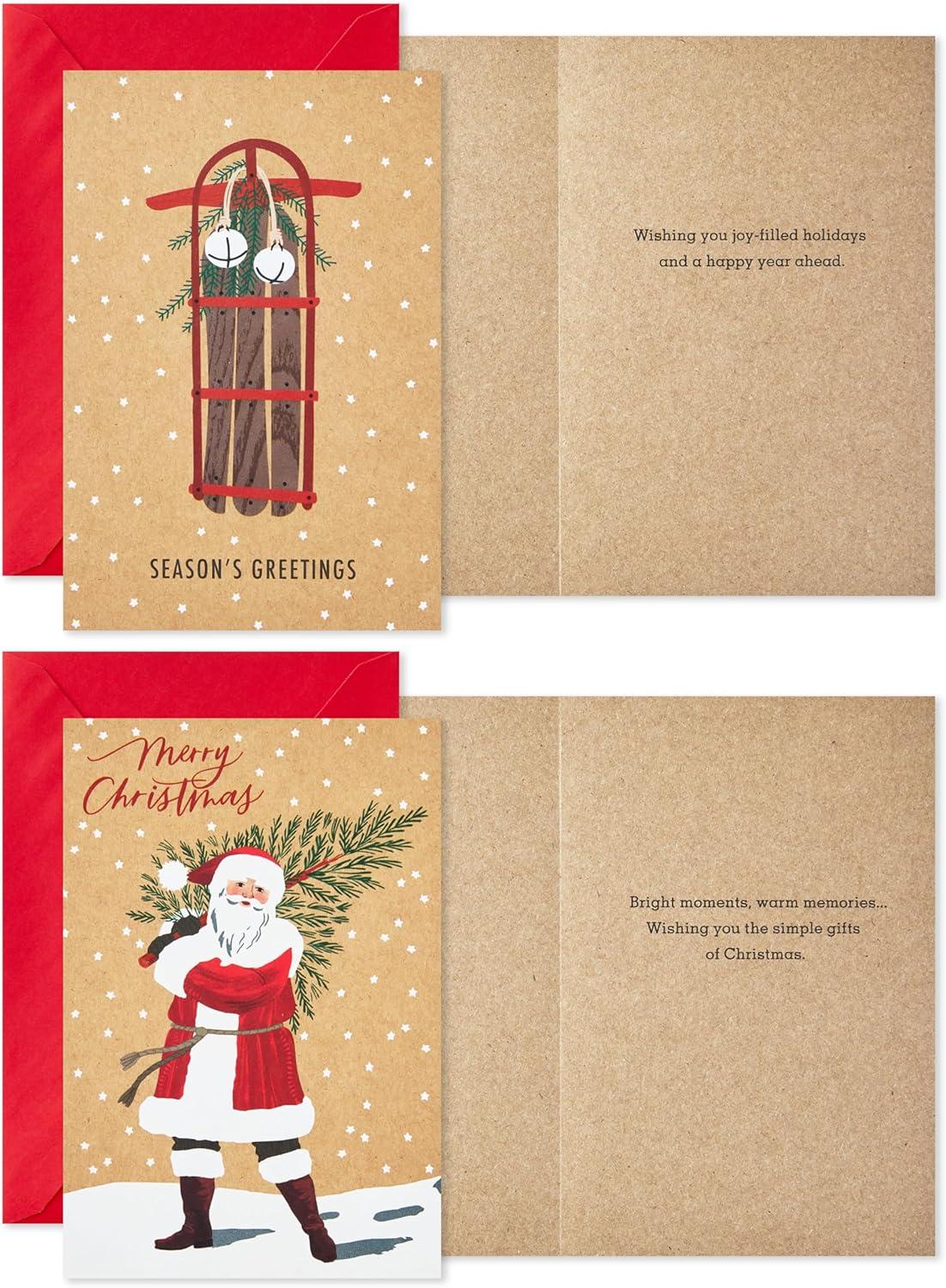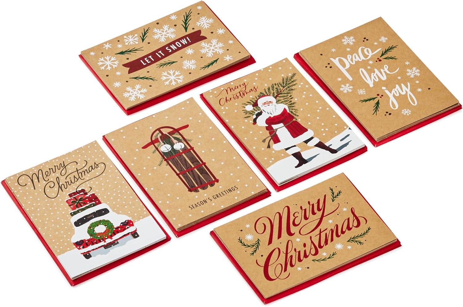 Hallmark Boxed Christmas Cards Assortment, Rustic Kraft (6 Designs, 36 Cards with Envelopes)(Holiday Rustic Kraft Card Assortment)