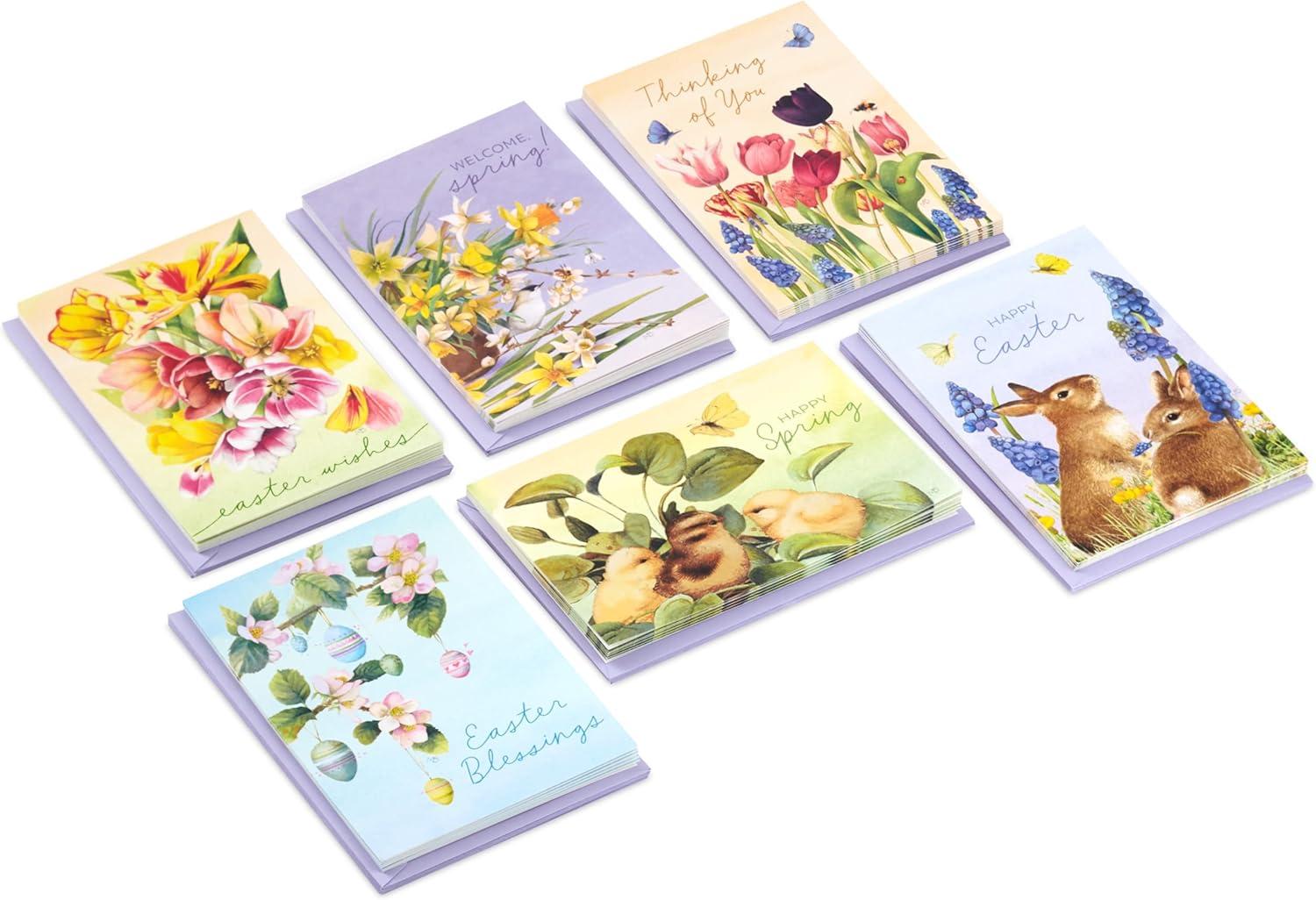 Hallmark Easter Card Pack (24 Notecards with Envelopes, 4 Designs) Pink Tulips, Pastel Eggs, Easter Bunny(Flowers and Butterflies)