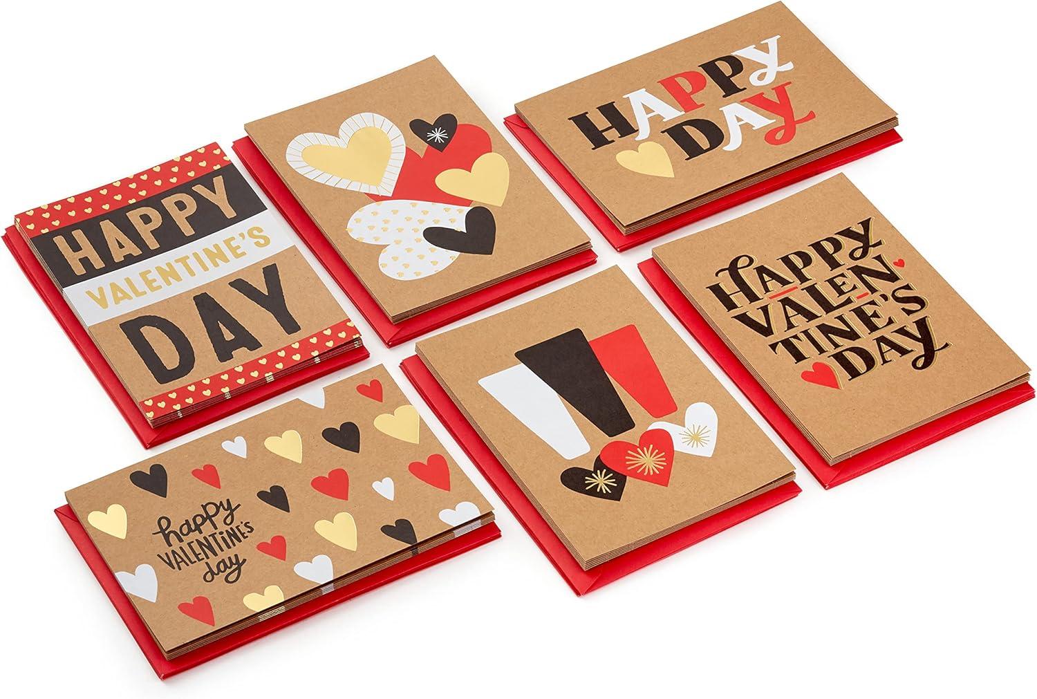 Hallmark Boxed Christmas Cards Assortment, Rustic Kraft (6 Designs, 36 Cards with Envelopes)(Valentine Gold Foil Kraft Card Assortment)