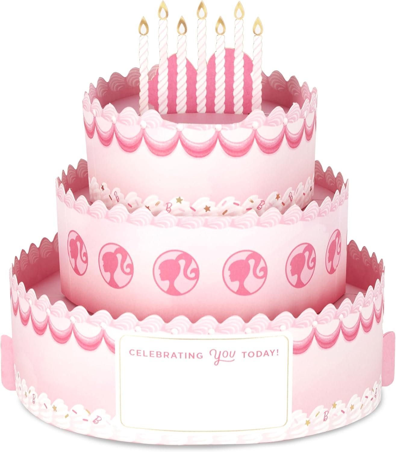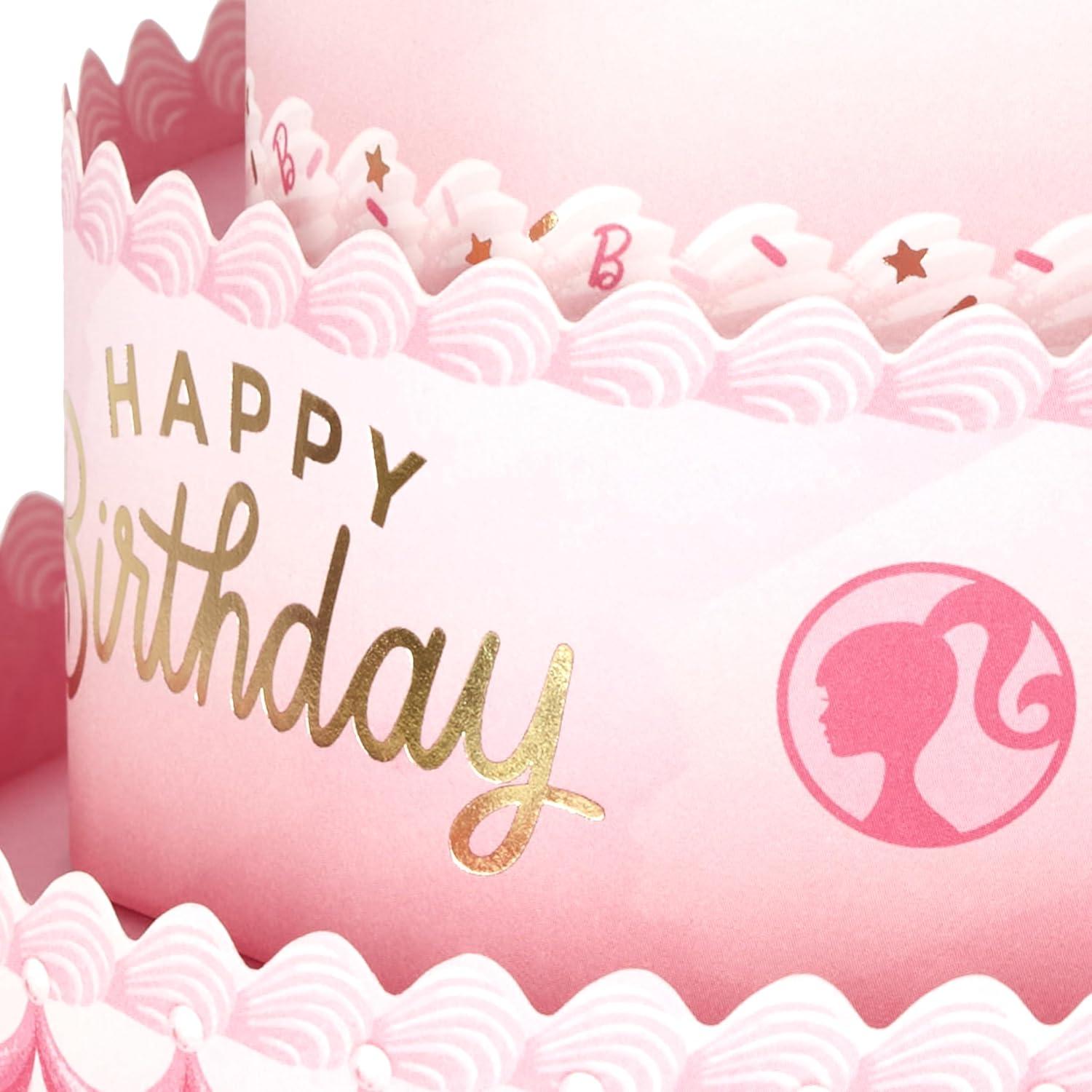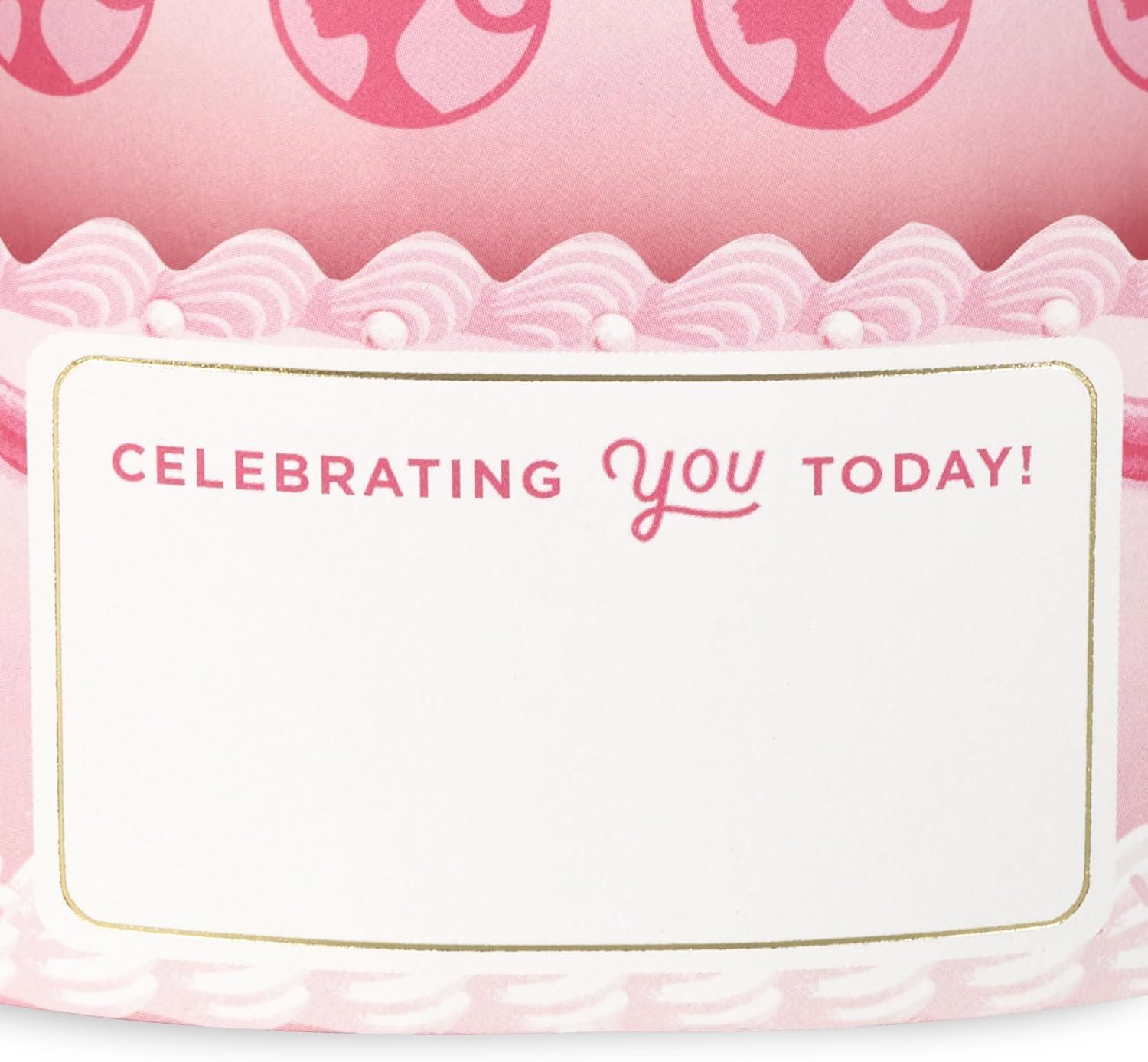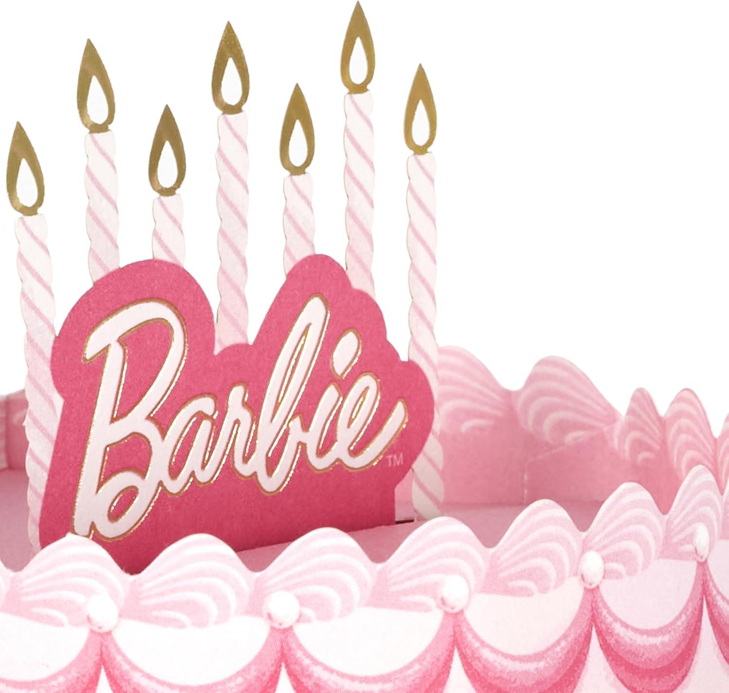 Hallmark Paper Wonder Barbie Pop-Up Card (Pink Birthday Cake) for Kids, Grandchildren, Fans