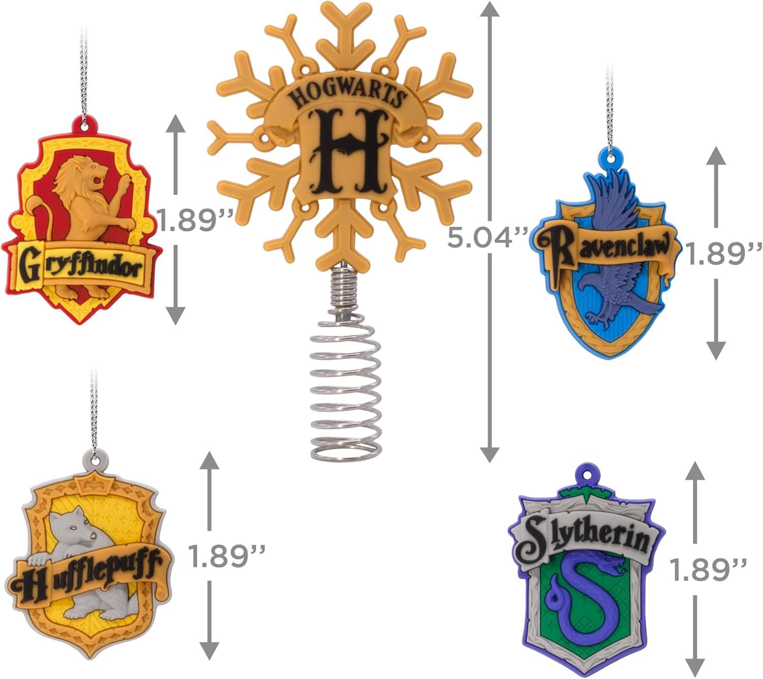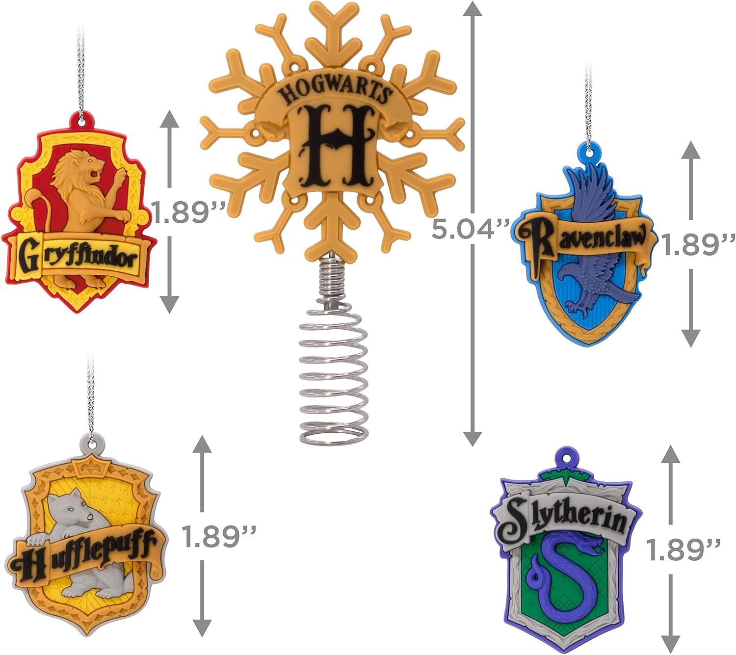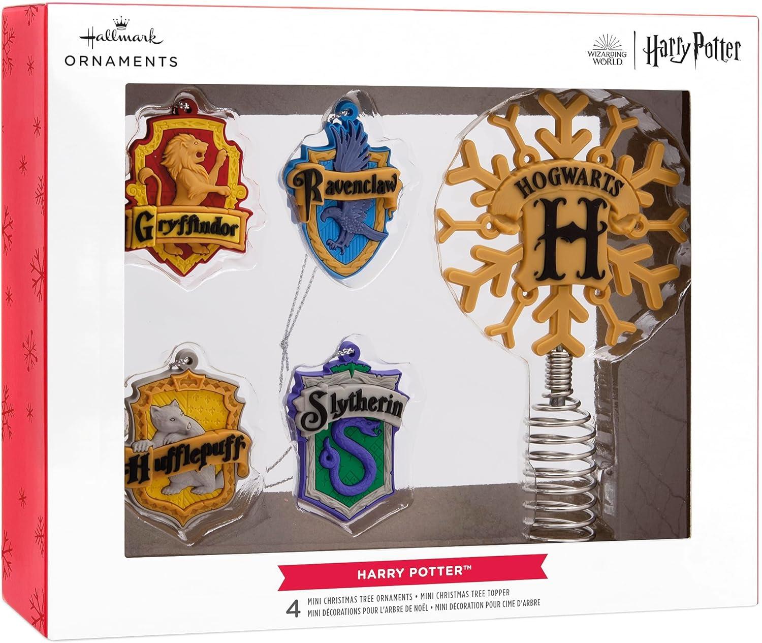Hallmark Harry Potter 5″ Miniature Christmas Tree Topper and 1.89″ Mini Ornaments, Set of 5, Shatterproof(House Crest Tree Topper)