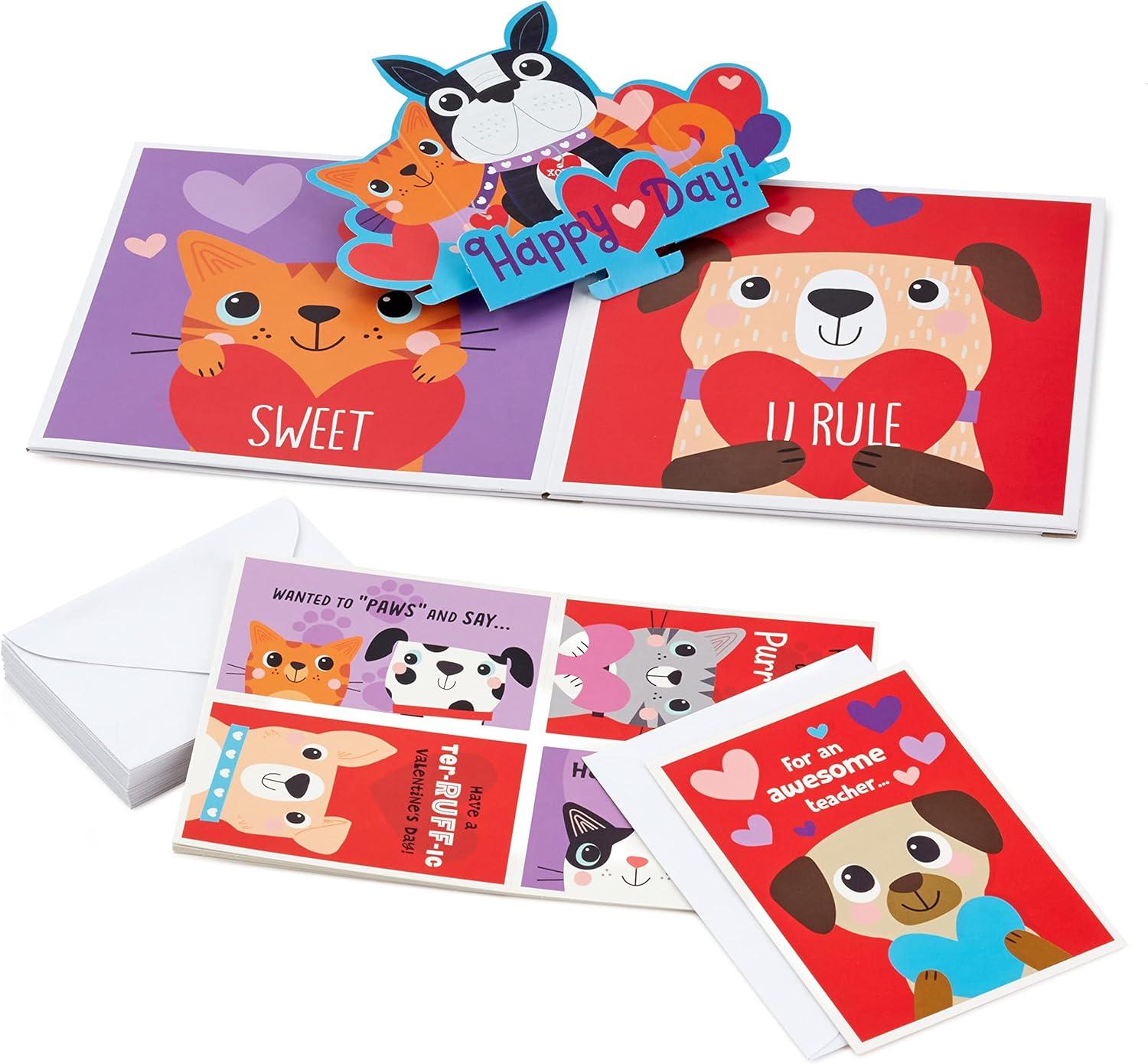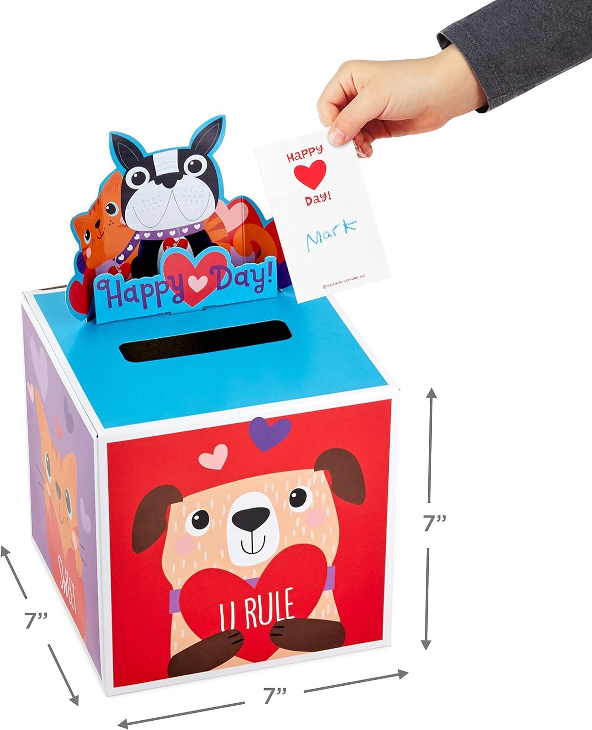 Hallmark Cats and Dogs Valentines Day Cards and Mailbox for Kids School Classroom Exchange (1 Box, 32 Valentine Cards, 1 Teacher Card)(Cats and Dogs Pop Up Box)