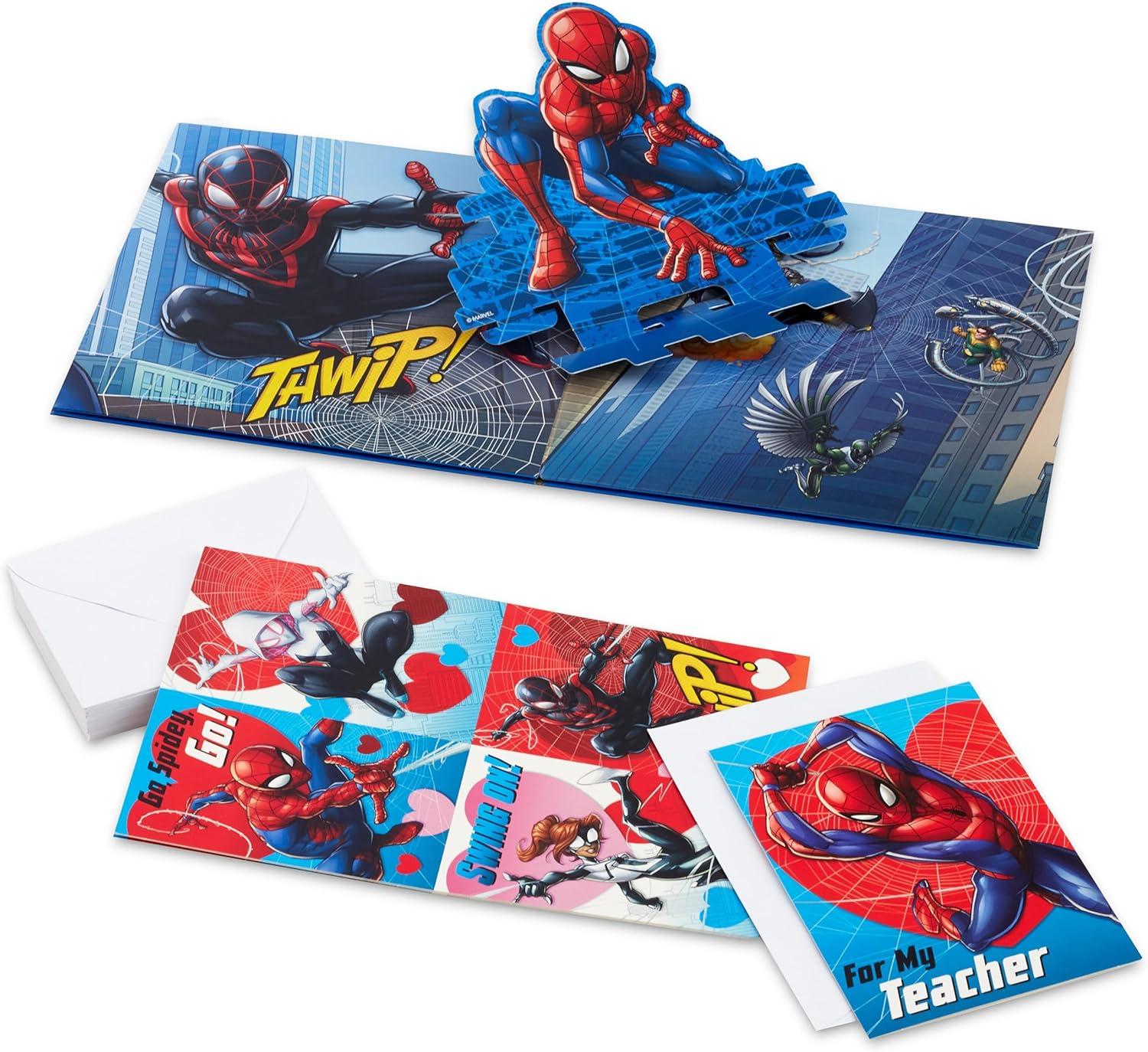 Hallmark Cats and Dogs Valentines Day Cards and Mailbox for Kids School Classroom Exchange (1 Box, 32 Valentine Cards, 1 Teacher Card)(Spider-Man Pop Up Box)