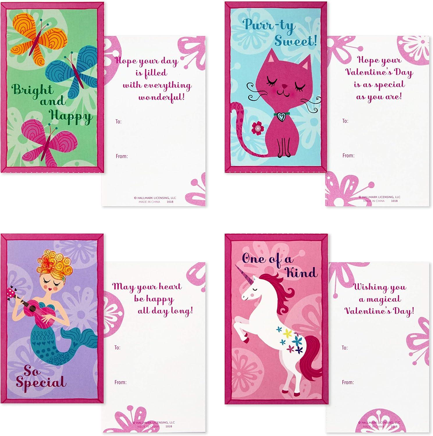 Hallmark Cats and Dogs Valentines Day Cards and Mailbox for Kids School Classroom Exchange (1 Box, 32 Valentine Cards, 1 Teacher Card)(Unicorns & Friends)