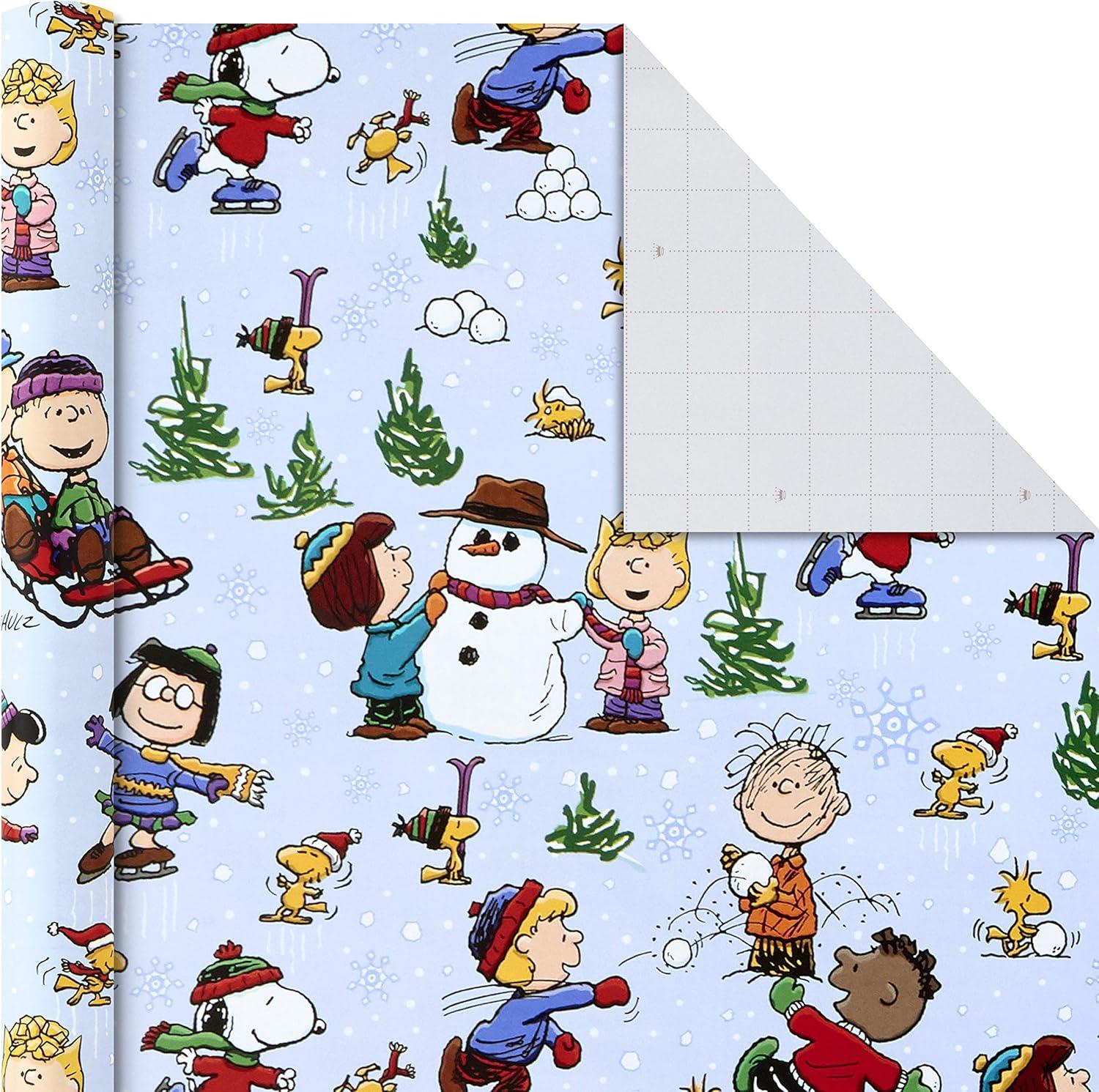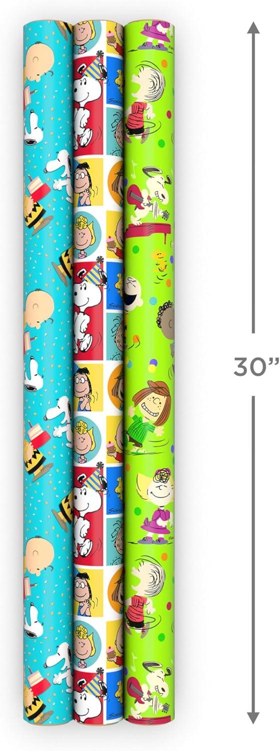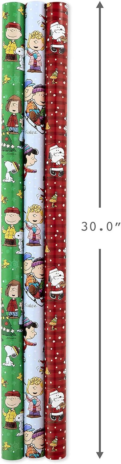 Hallmark Christmas Peanuts Wrapping Paper with Cut Lines on Reverse (Pack of 3, 105 sq. ft. ttl) Snoopy, Charlie Brown, Woodstock (5JXW1036)(All Occasion Wrapping Paper)