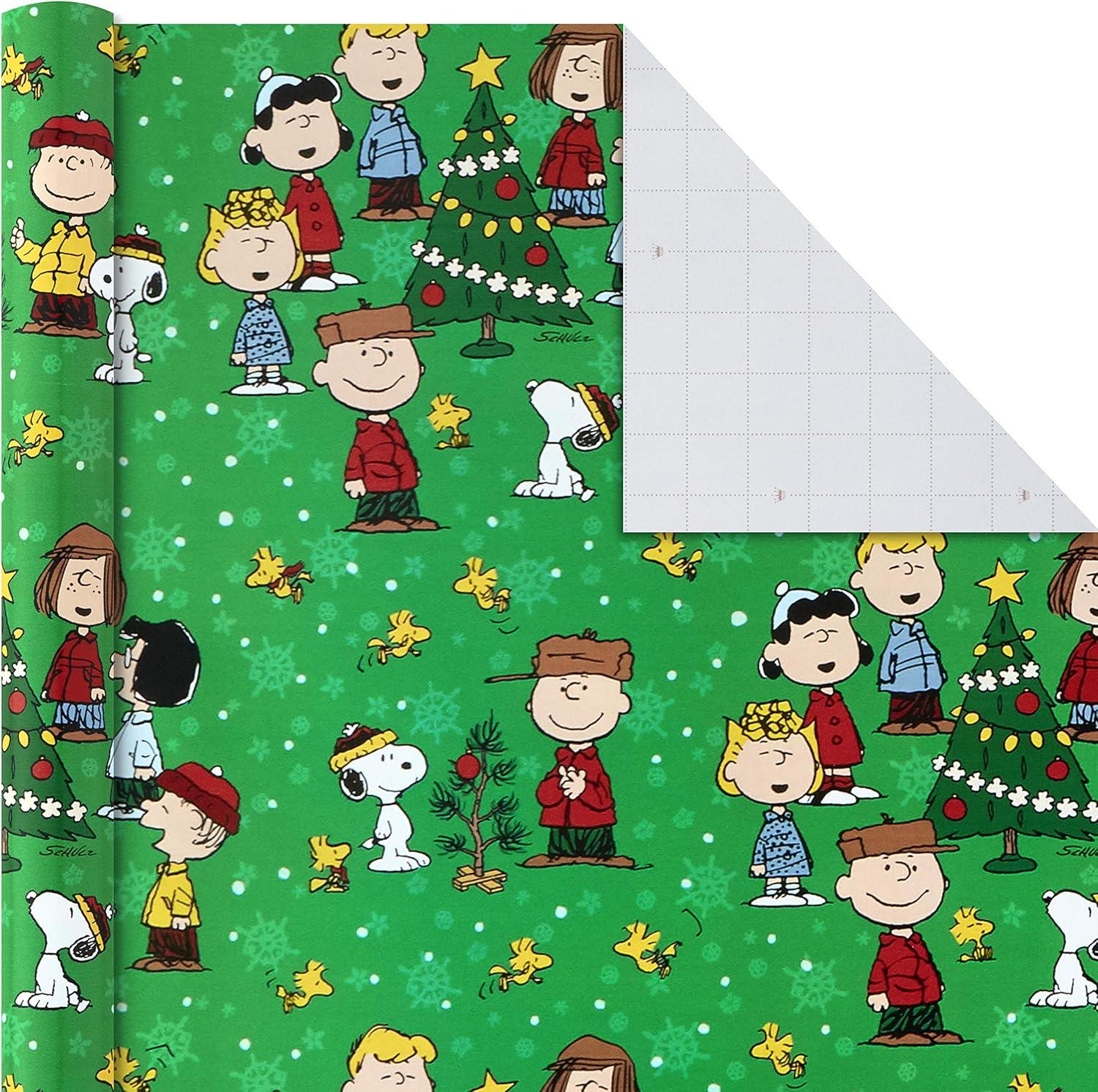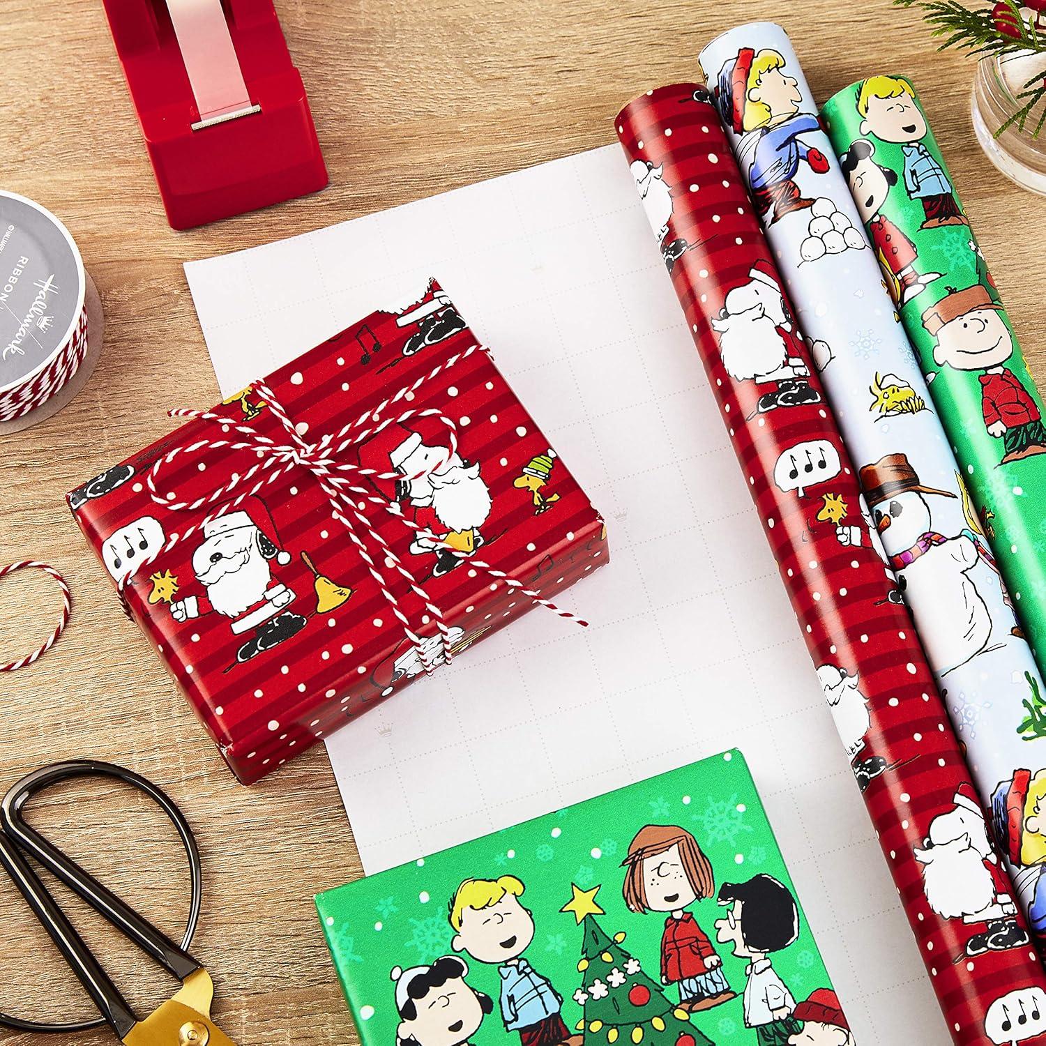 Hallmark Christmas Peanuts Wrapping Paper with Cut Lines on Reverse (Pack of 3, 105 sq. ft. ttl) Snoopy, Charlie Brown, Woodstock (5JXW1036)(Christmas Wrapping Paper)