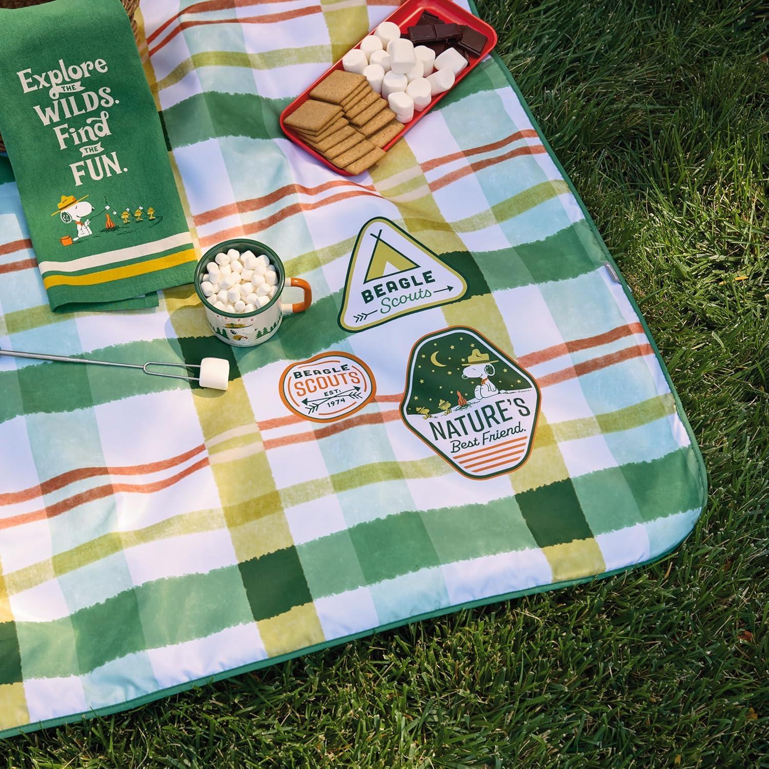 Hallmark Peanuts Beagle Scouts Picnic Blanket With Bag, Snoopy & Woodstock Plaid Blanket(Picnic Blanket)