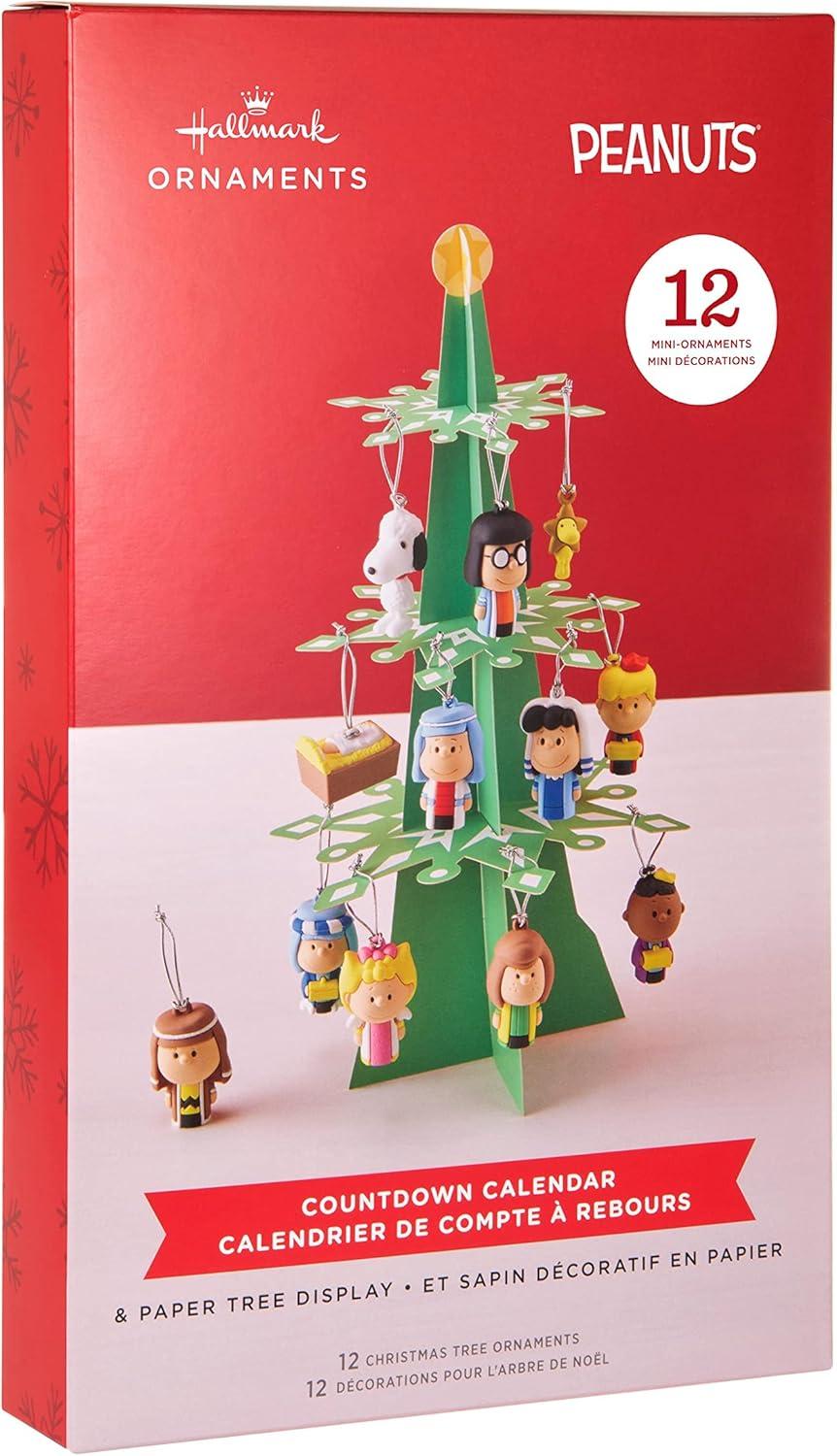 Hallmark Peanuts Nativity Countdown Calendar Miniature Christmas Tree Set with 12 Mini Ornaments(Countdown Calendar)