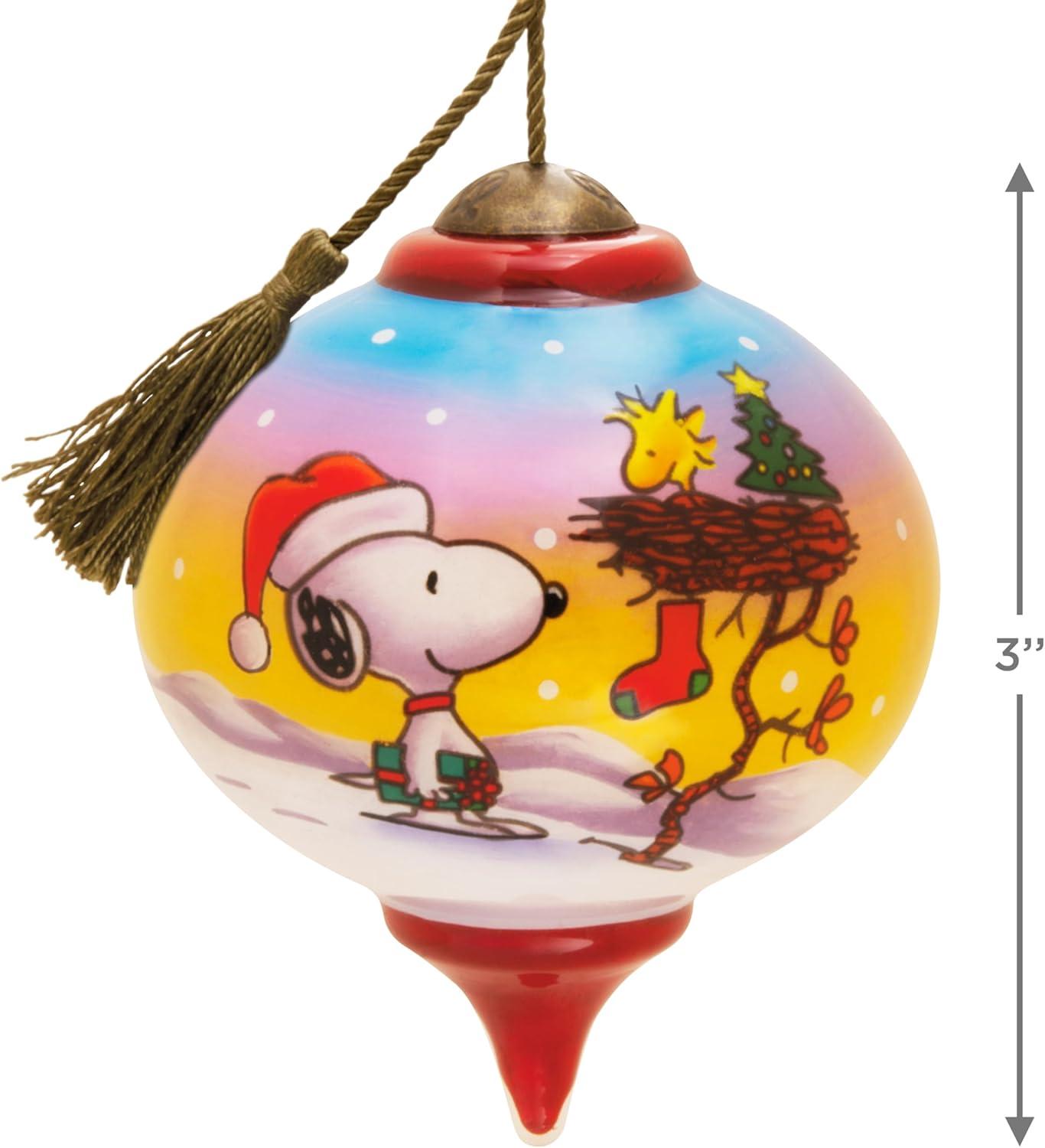 Hallmark Peanuts Ne’Qwa Art Snoopy and Woodstock Christmas Ornament, Hand-Painted Glass