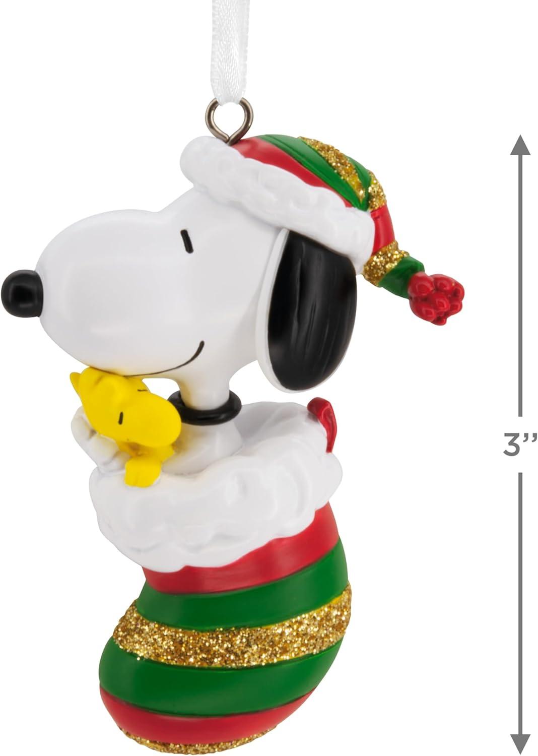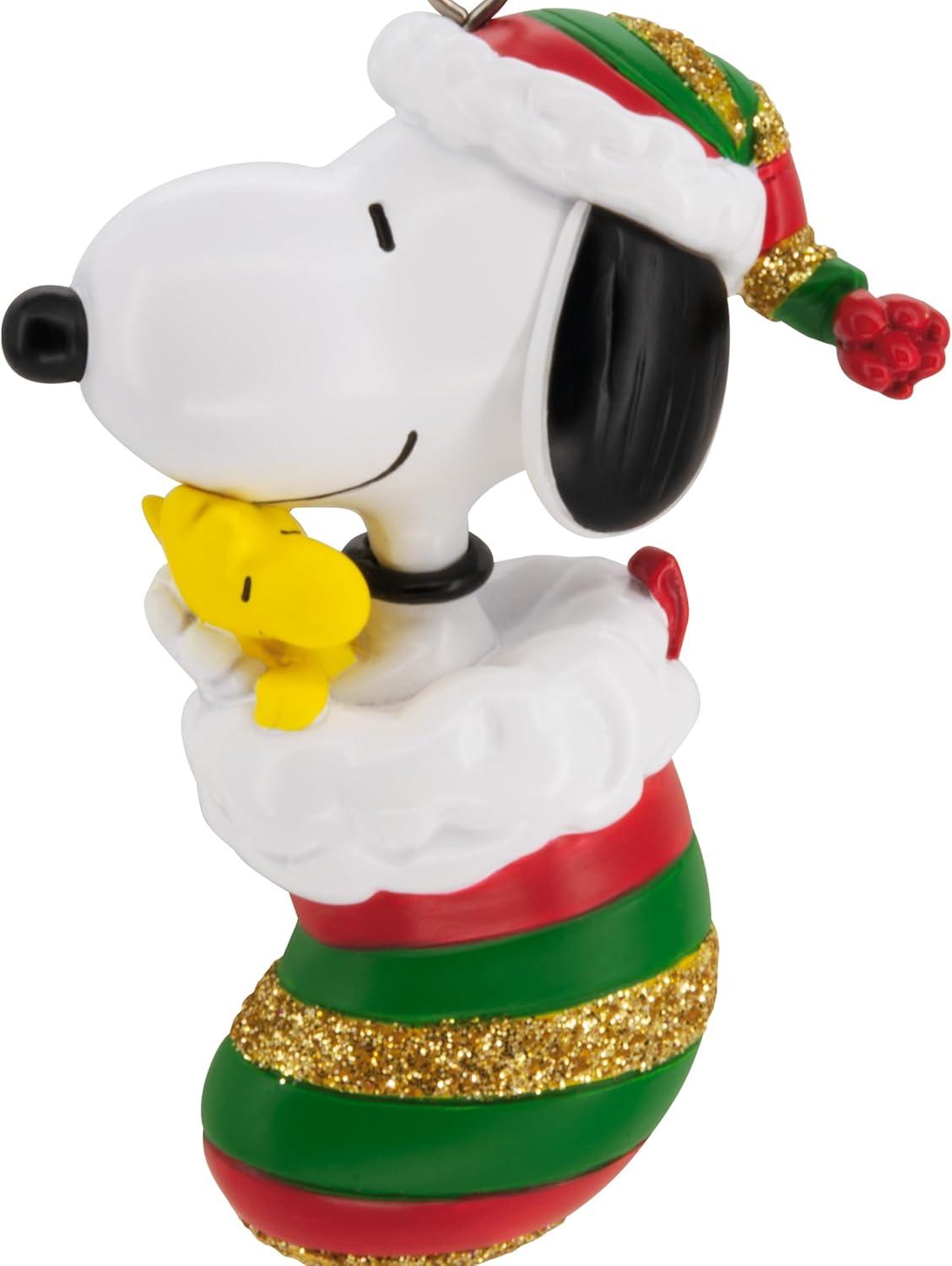 Hallmark Peanuts Snoopy and Woodstock in Stocking Christmas Ornament, Gifts for Peanuts Fans