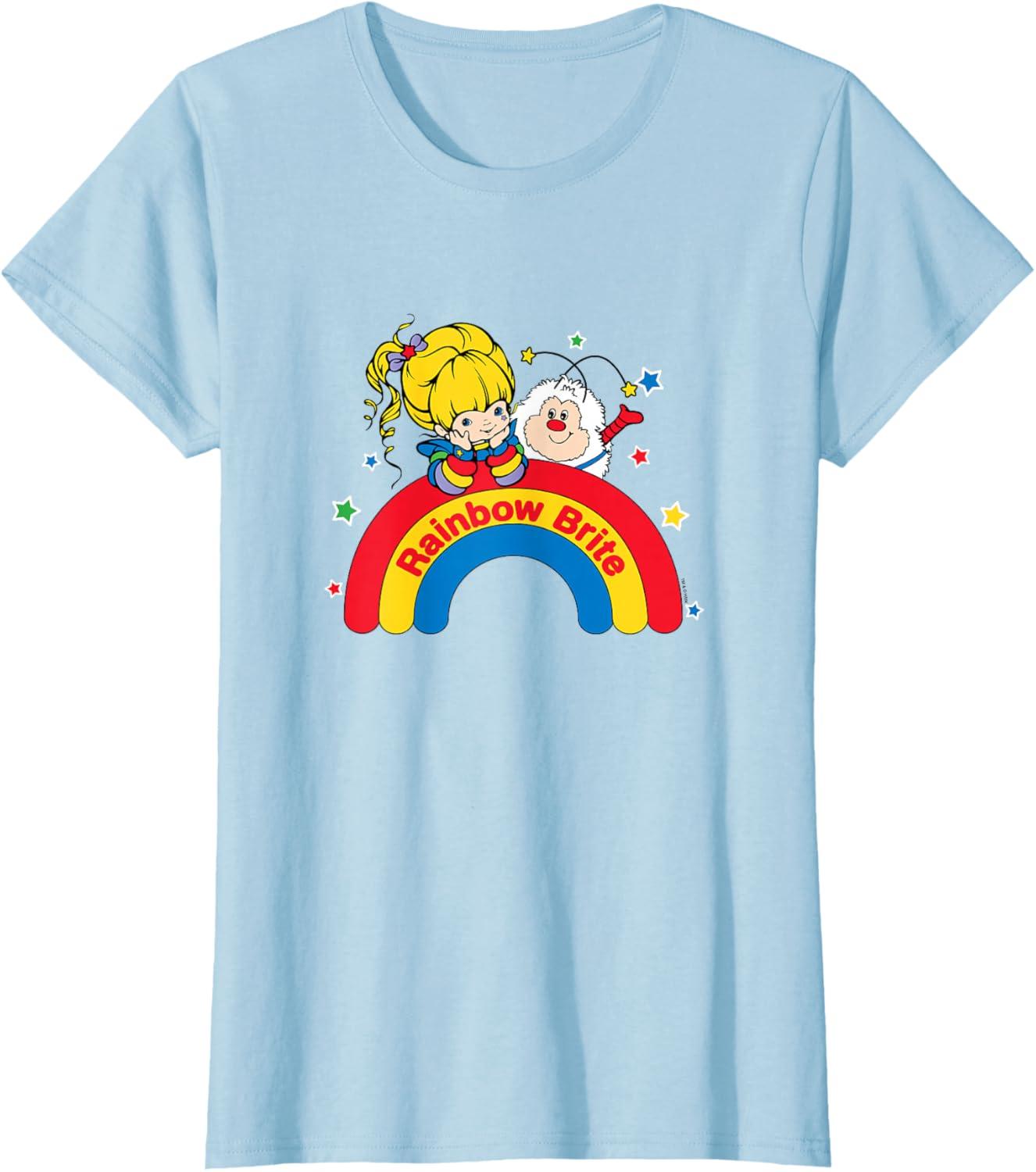Rainbow Brite & Sprite Vintage Rainbow And Stars Portrait T-Shirt(Baby Blue)