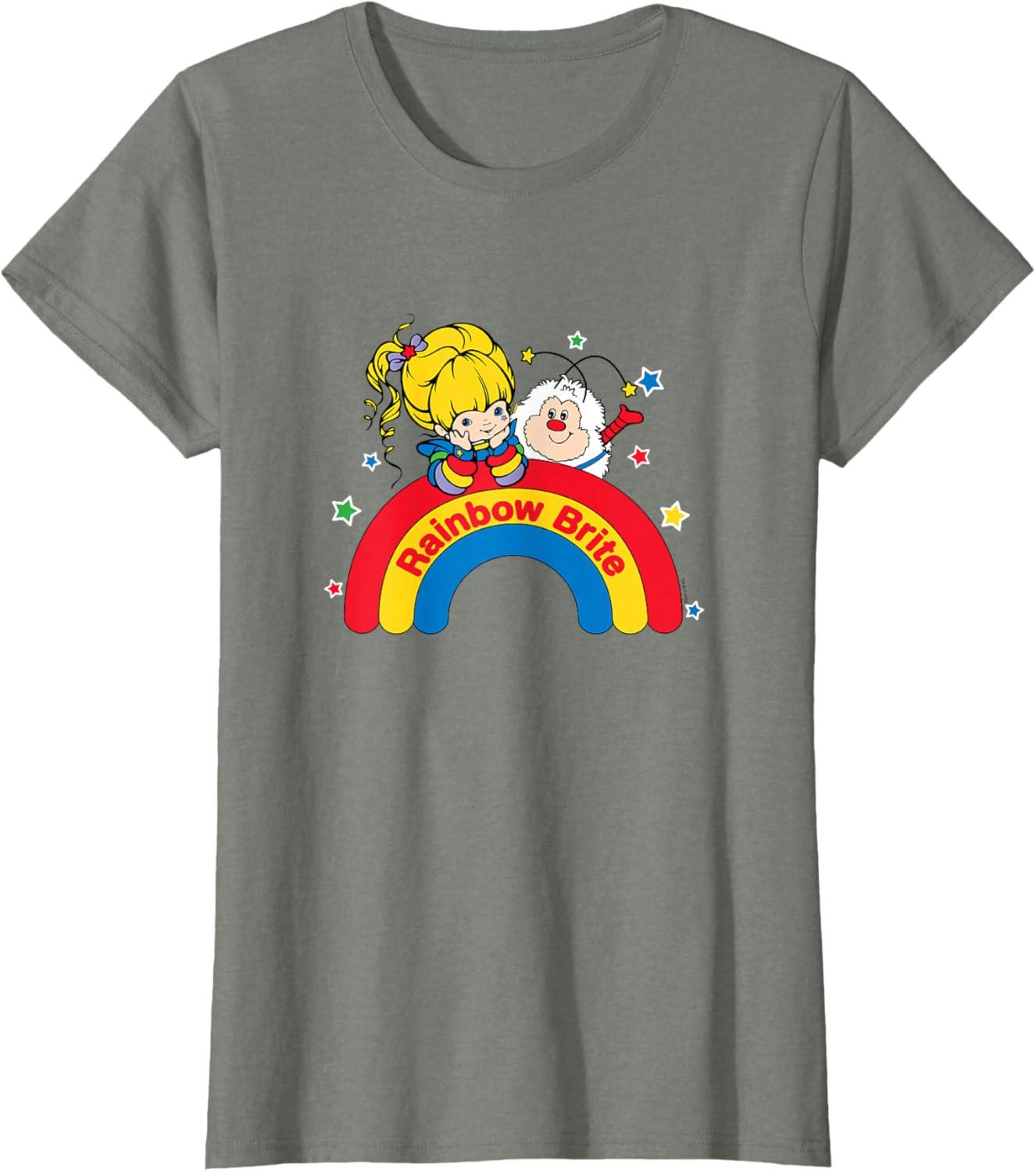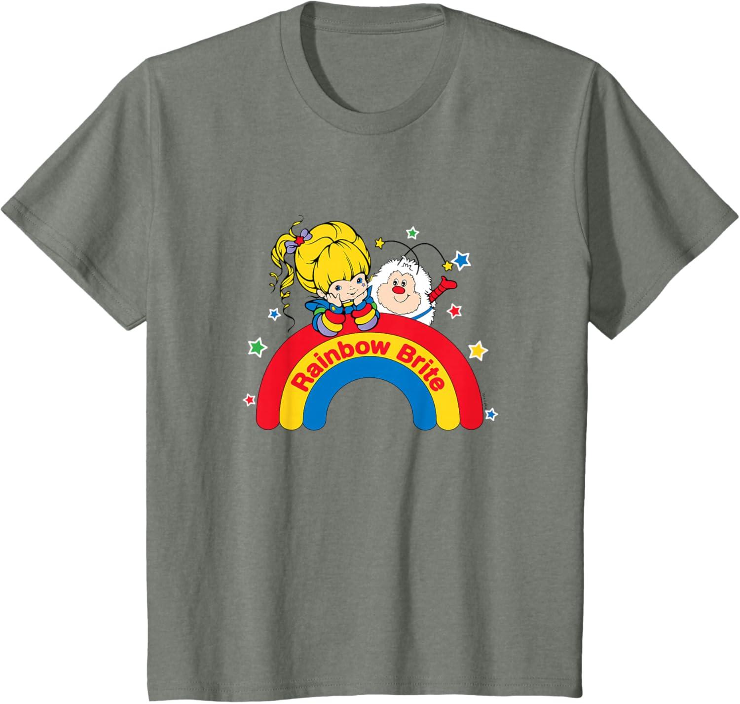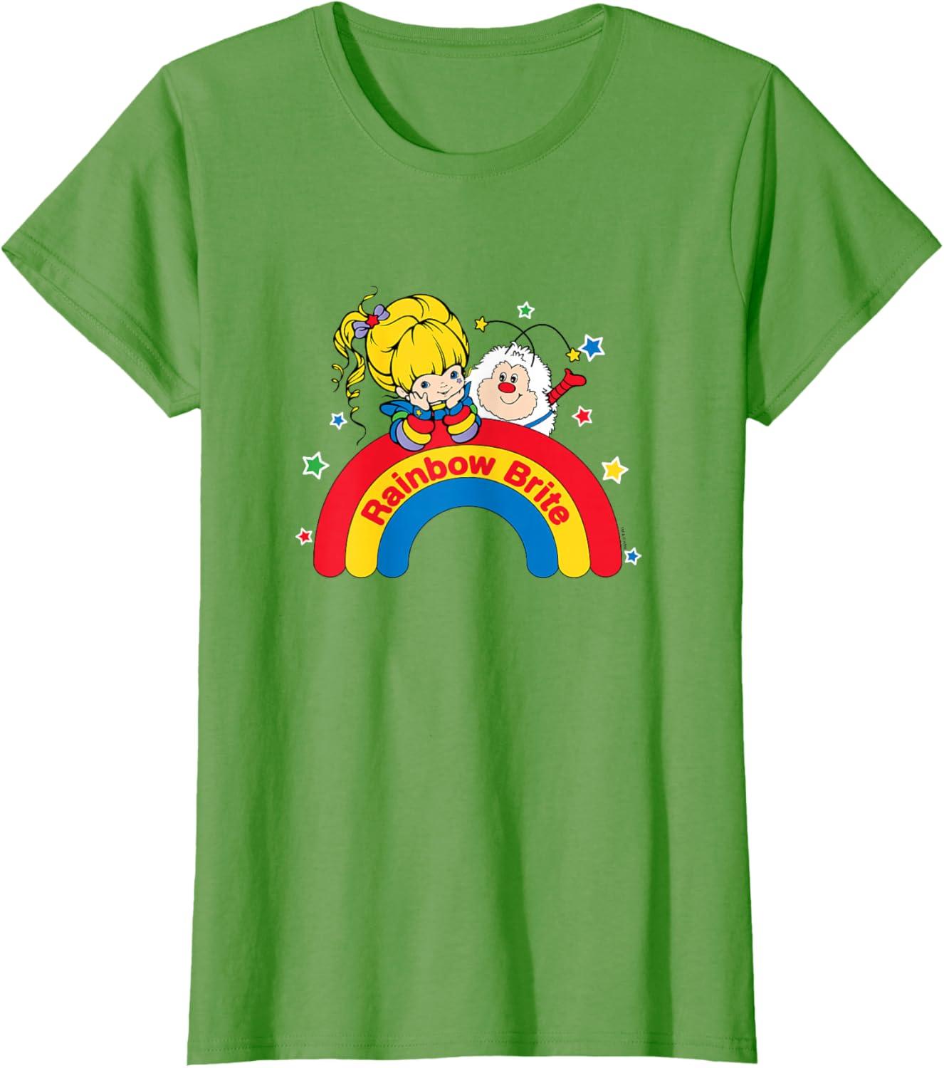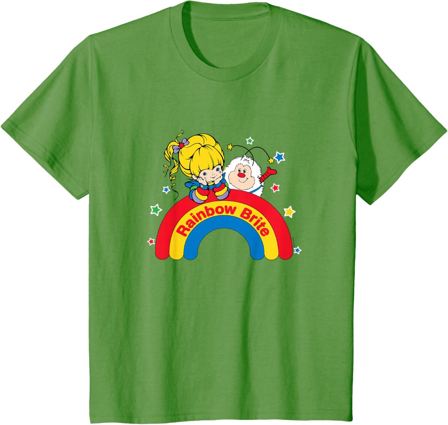 Rainbow Brite & Sprite Vintage Rainbow And Stars Portrait T-Shirt(Grass Green)