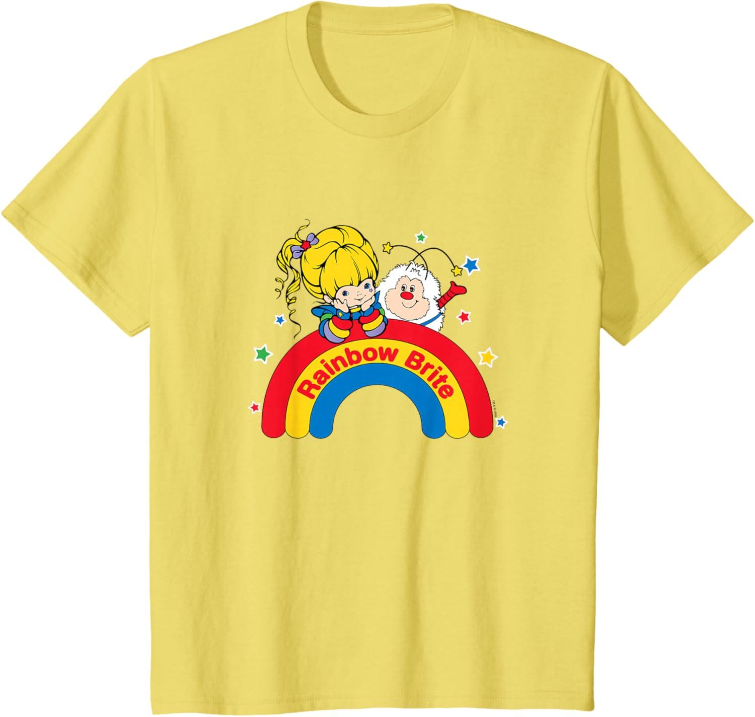 Rainbow Brite & Sprite Vintage Rainbow And Stars Portrait T-Shirt(Lemon Yellow)