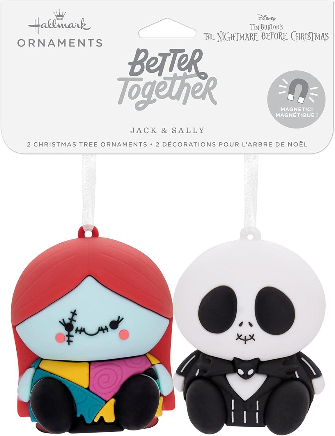 Hallmark Better Together Disney Tim Burton’s The Nightmare Before Christmas Jack and Sally Magnetic Christmas Ornaments, Set of 2, Shatterproof(Jack & Sally)