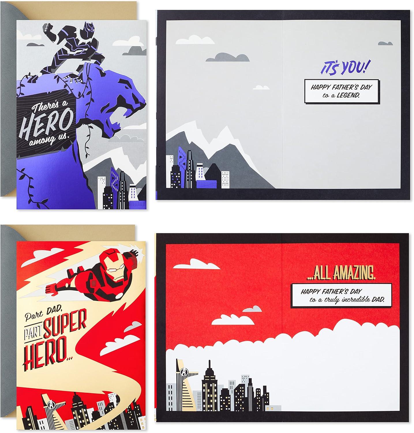 Hallmark Avengers Pack of 3 Fathers Day Cards (Iron Man, Black Panther, Captain America)(Avengers 3 Cards with Envelopes)