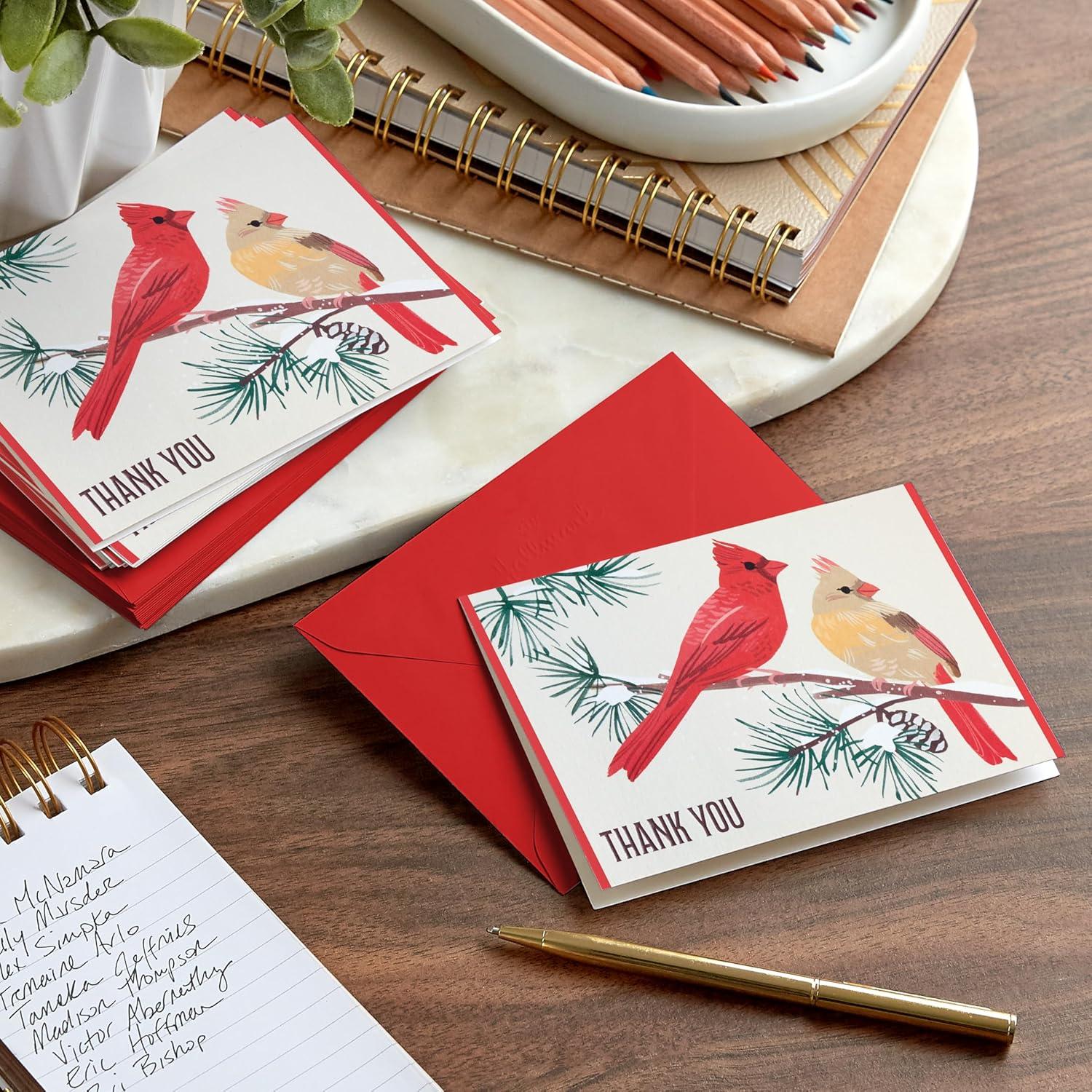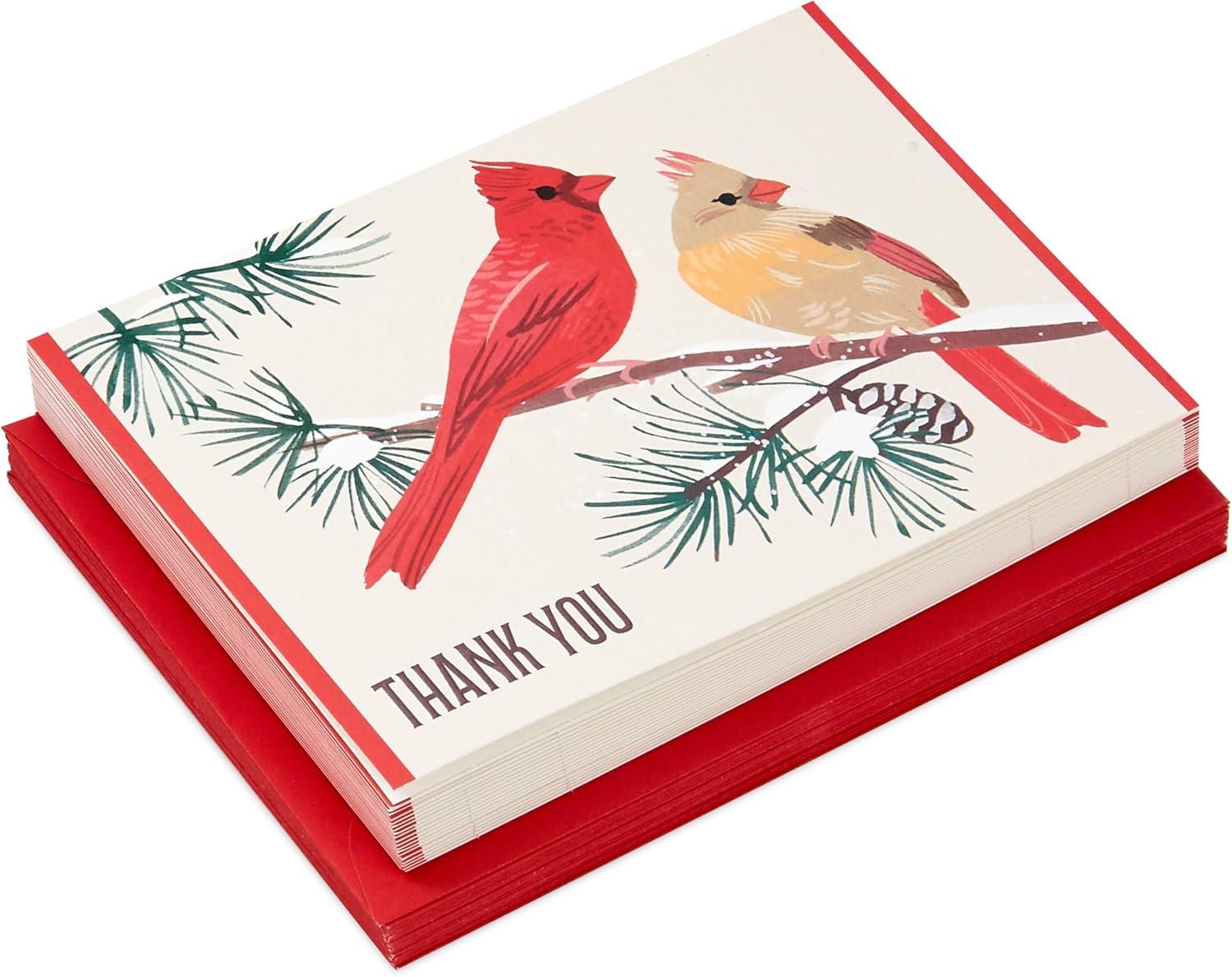 Hallmark Cardinal Thank You Notes (20 Cards with Envelopes) for Christmas, Holidays, Winter