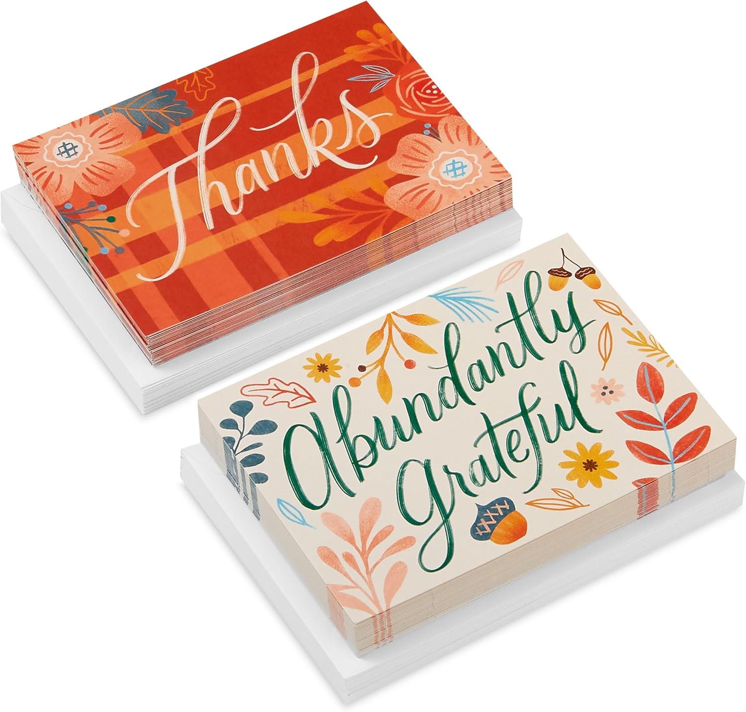 Hallmark Fall Floral Thank You Note Card Assortment (50 Cards with Envelopes) for Weddings, Teachers, Clergy, Bosses, Thanksgiving