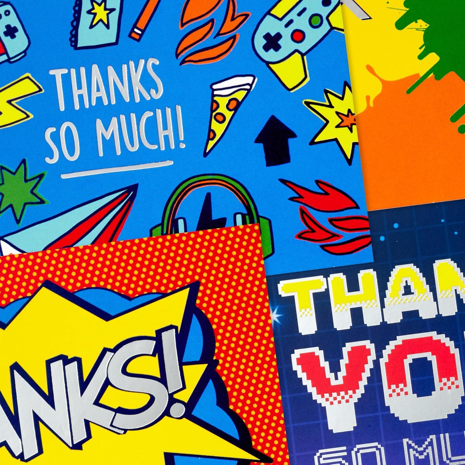 Hallmark Comic Book and Video Game Thank You Note Assortment (24 Blank Cards with Envelopes) for Kids, Grandchildren, Gamers(Modern)
