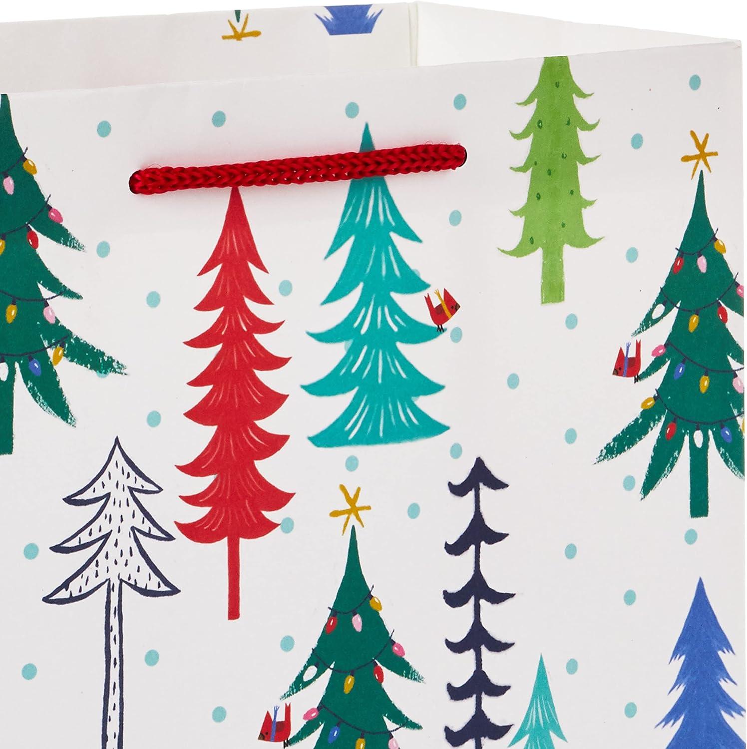 Hallmark 9″ Christmas Gift Bags (6 Medium Bags, 3 Designs: Red Polka Dot, Colorful Trees, Navy Snowflake) for Holiday Partes, Winter Weddings, Birthdays