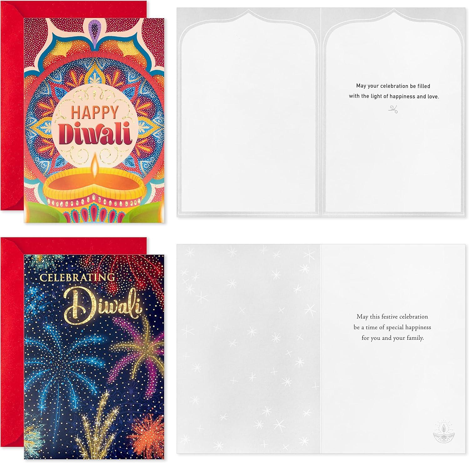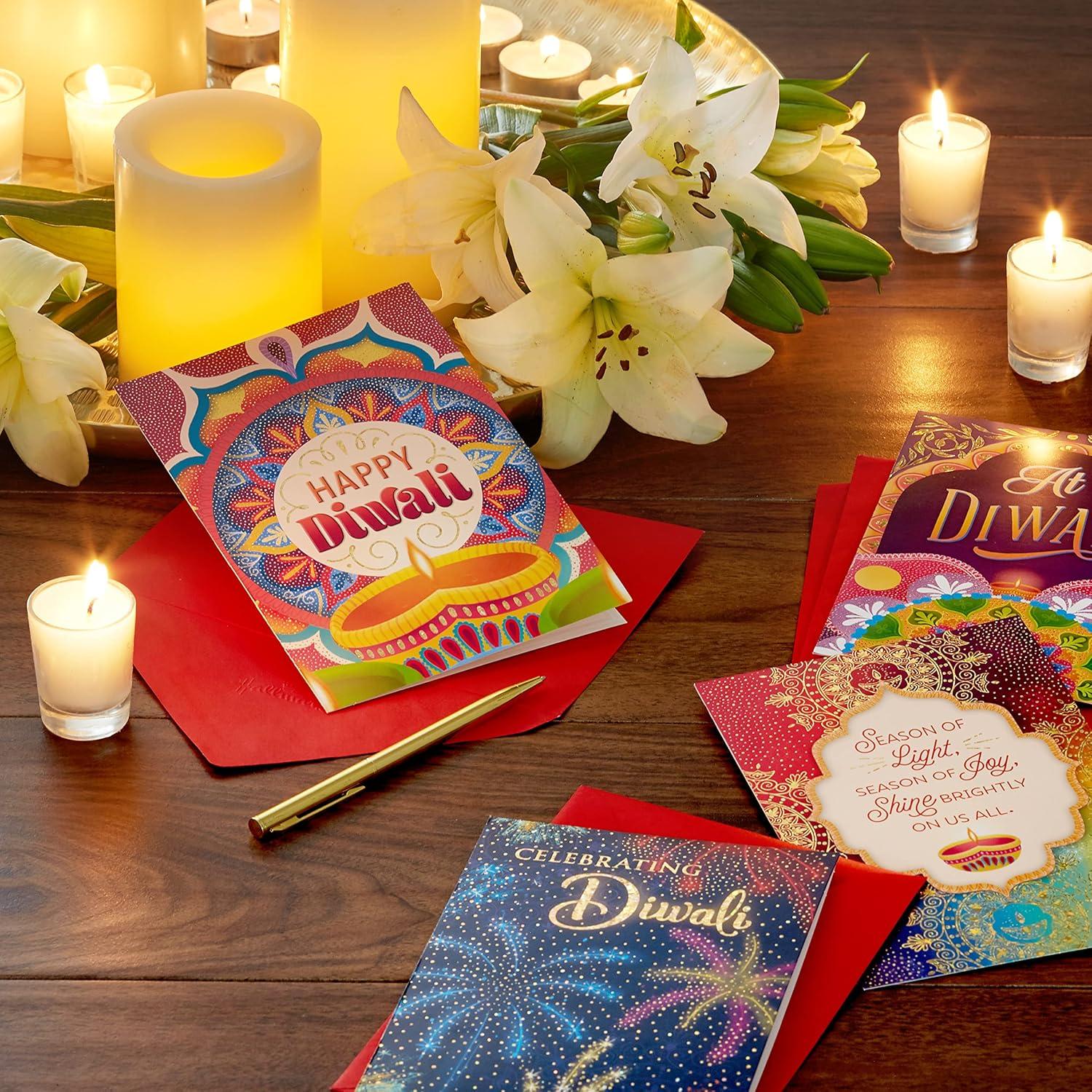Hallmark Golden Thread Diwali Card Assortment, Happy Diwali (16 Cards with Envelopes)
