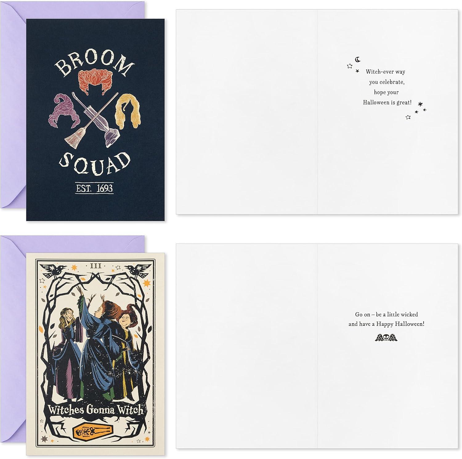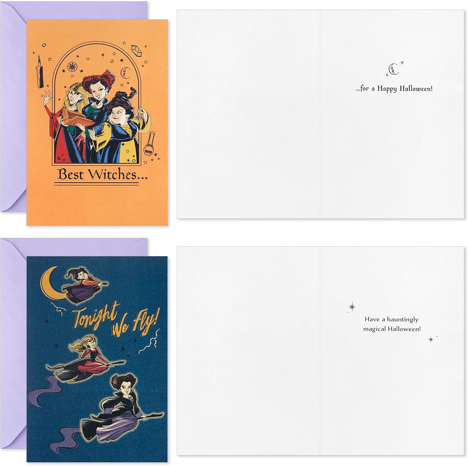 Hallmark Vintage Halloween Cards (8 Cards with Envelopes) Cute Witch with Black Cat and Jack-o-Lantern(Halloween Tree)