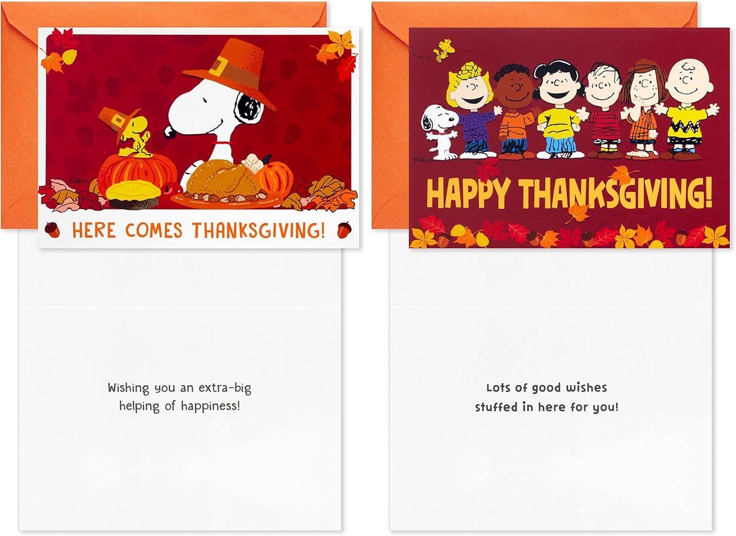 Hallmark Peanuts Thanksgiving Cards Assortment, Snoopy and Friends (16 Assorted Cards with Envelopes)(Peanuts Thanksgiving Assortment)