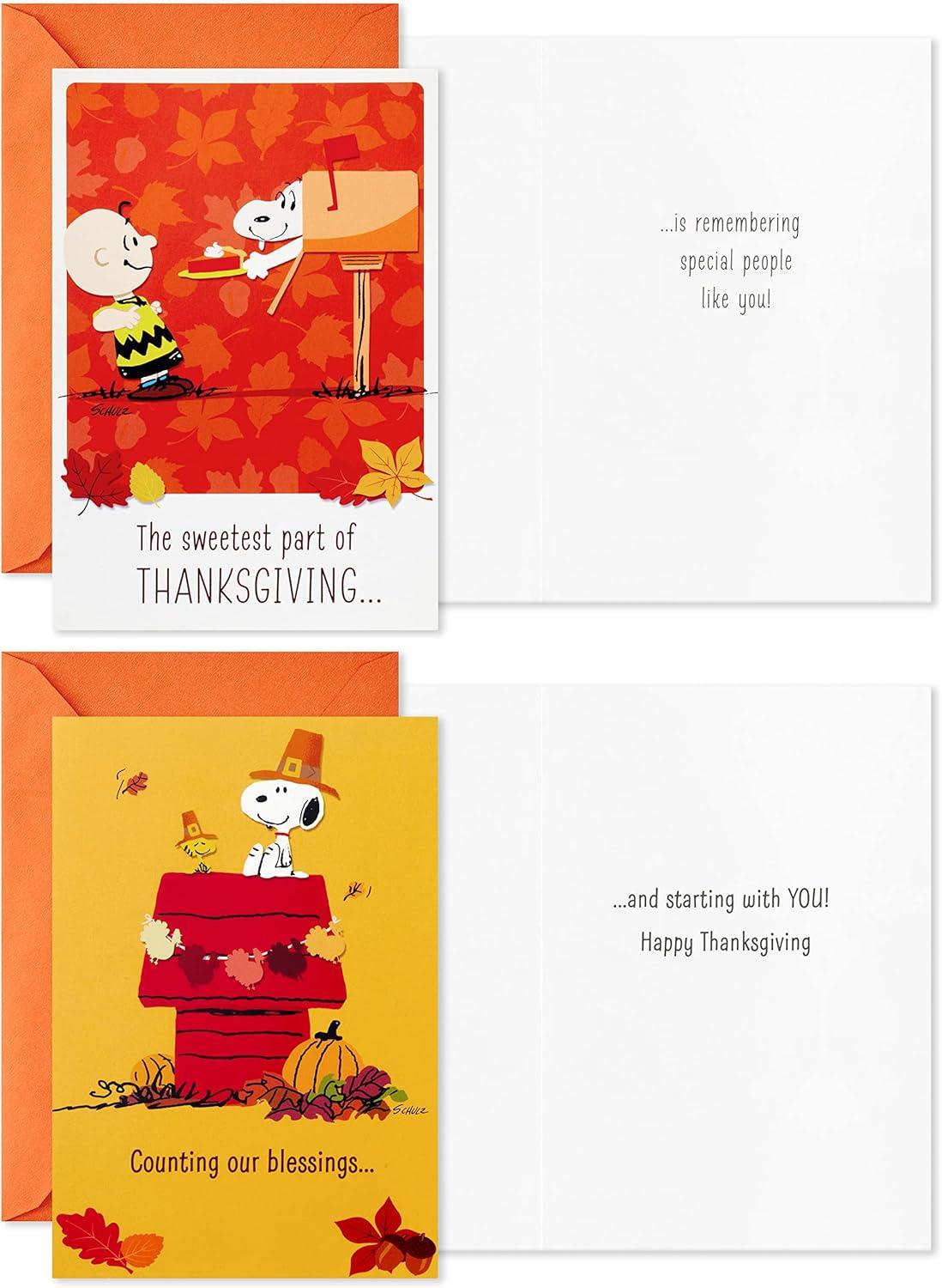 Hallmark Peanuts Thanksgiving Cards Assortment, Snoopy and Friends (16 Assorted Cards with Envelopes)(Updated Peanuts Mini Assortment)