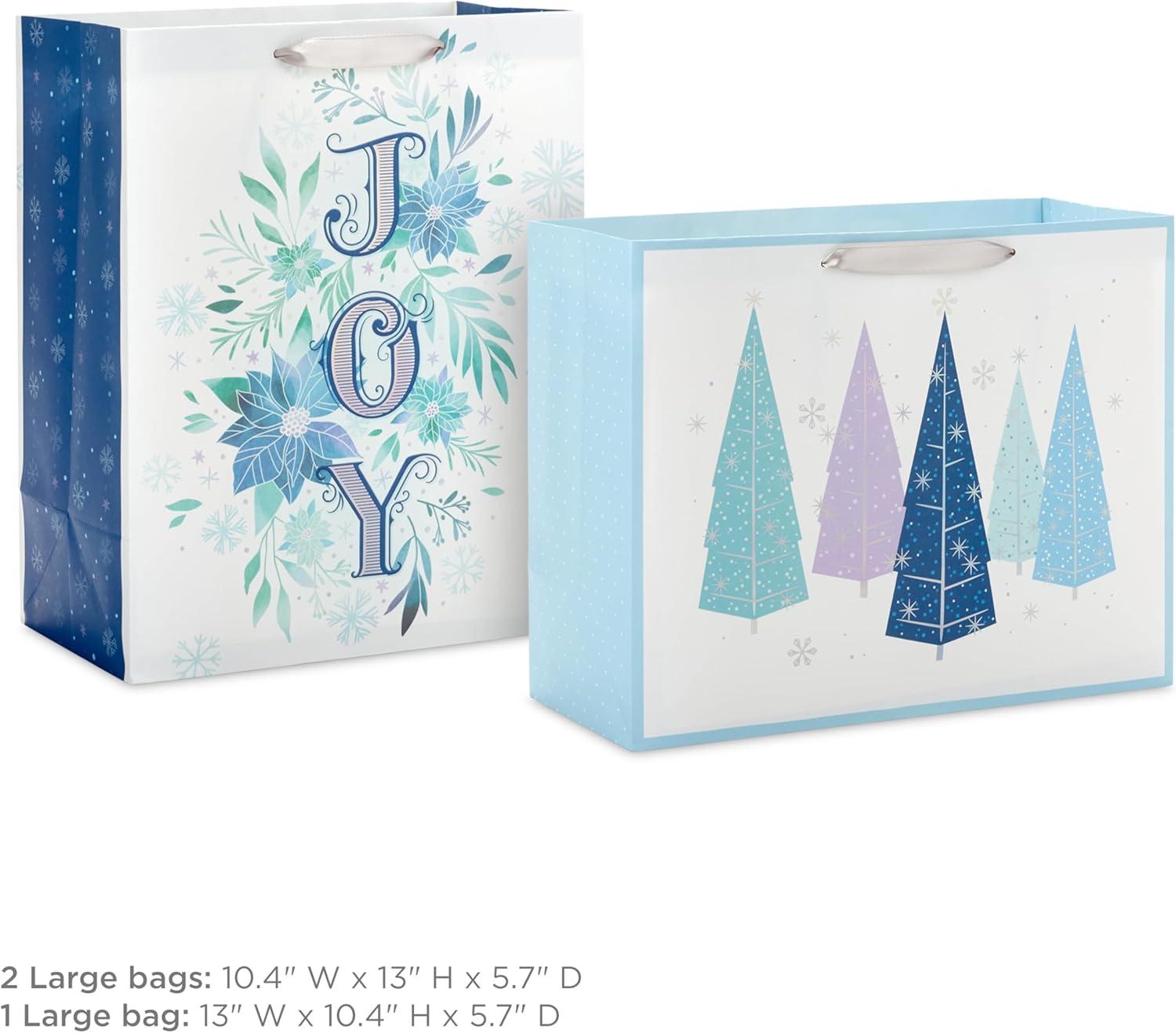 Hallmark 13″ Large Gift Bag Bundle (3 Bags: 2 Vertical, 1 Horizontal) Watercolor Winter Wreath, Trees, Joy in Lavender, Sage Green, Light Blue, Silver(1 Count (Pack of 3))