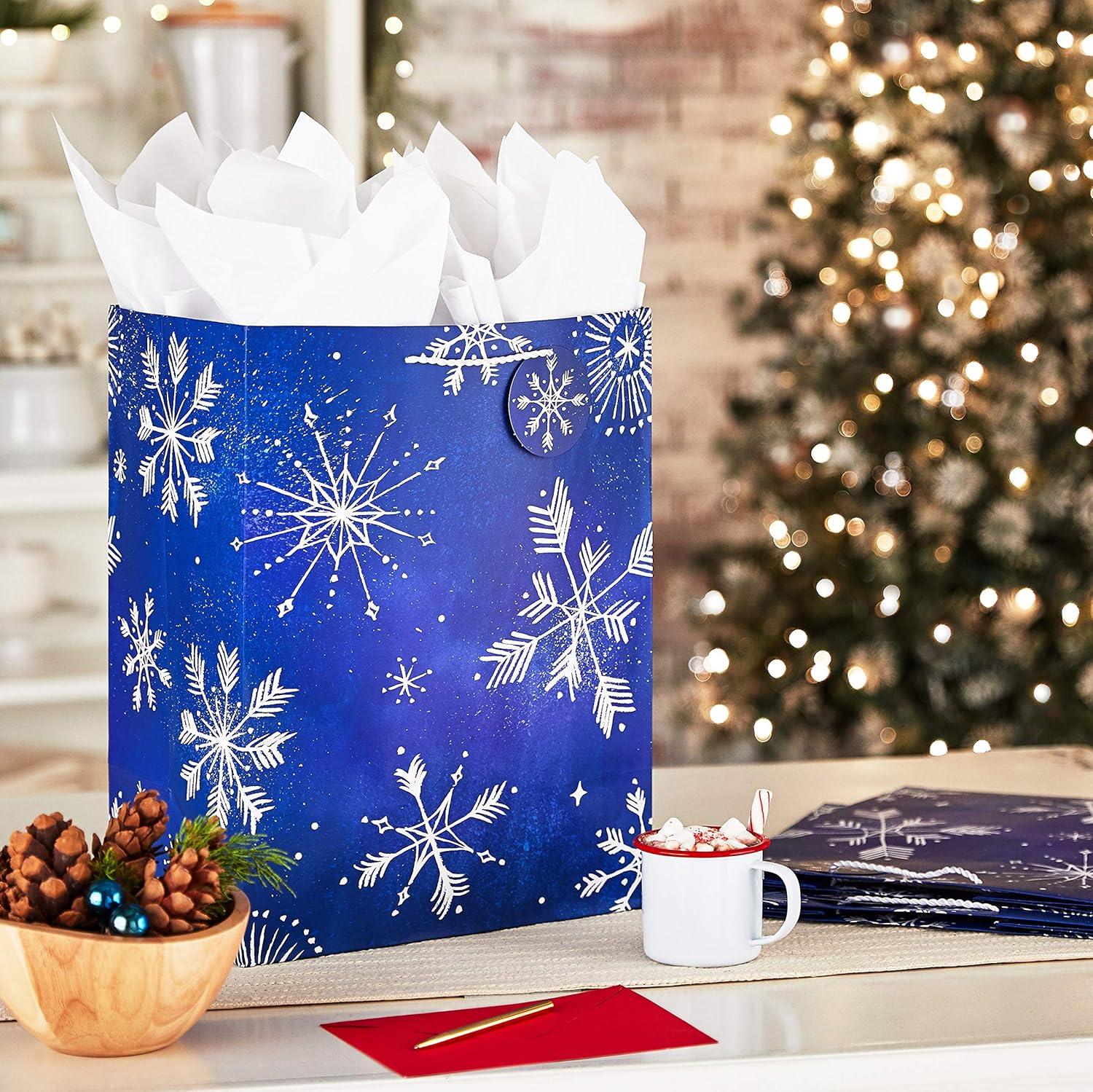 Hallmark 13″ Large Gift Bag Bundle (3 Bags: 2 Vertical, 1 Horizontal) Watercolor Winter Wreath, Trees, Joy in Lavender, Sage Green, Light Blue, Silver(Extra Large)