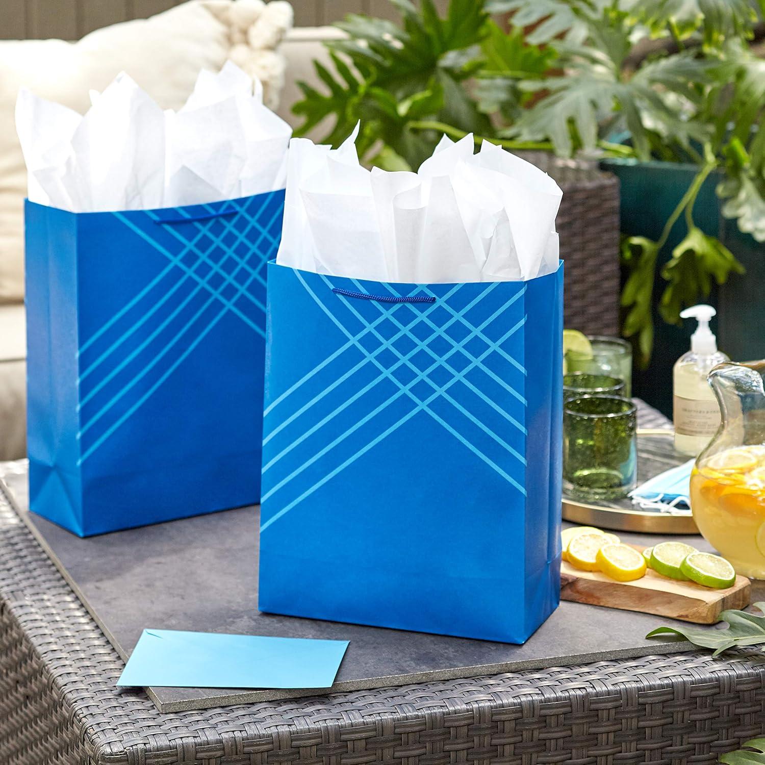 Hallmark 14″ Extra Large Blue Gift Bag Bundle (Pack of 3) for Birthdays, Graduations, Father’s Day, Baby Showers, Bridal Showers(Blue)