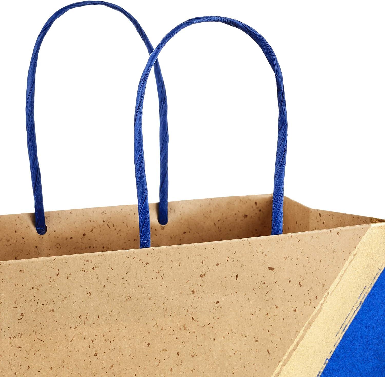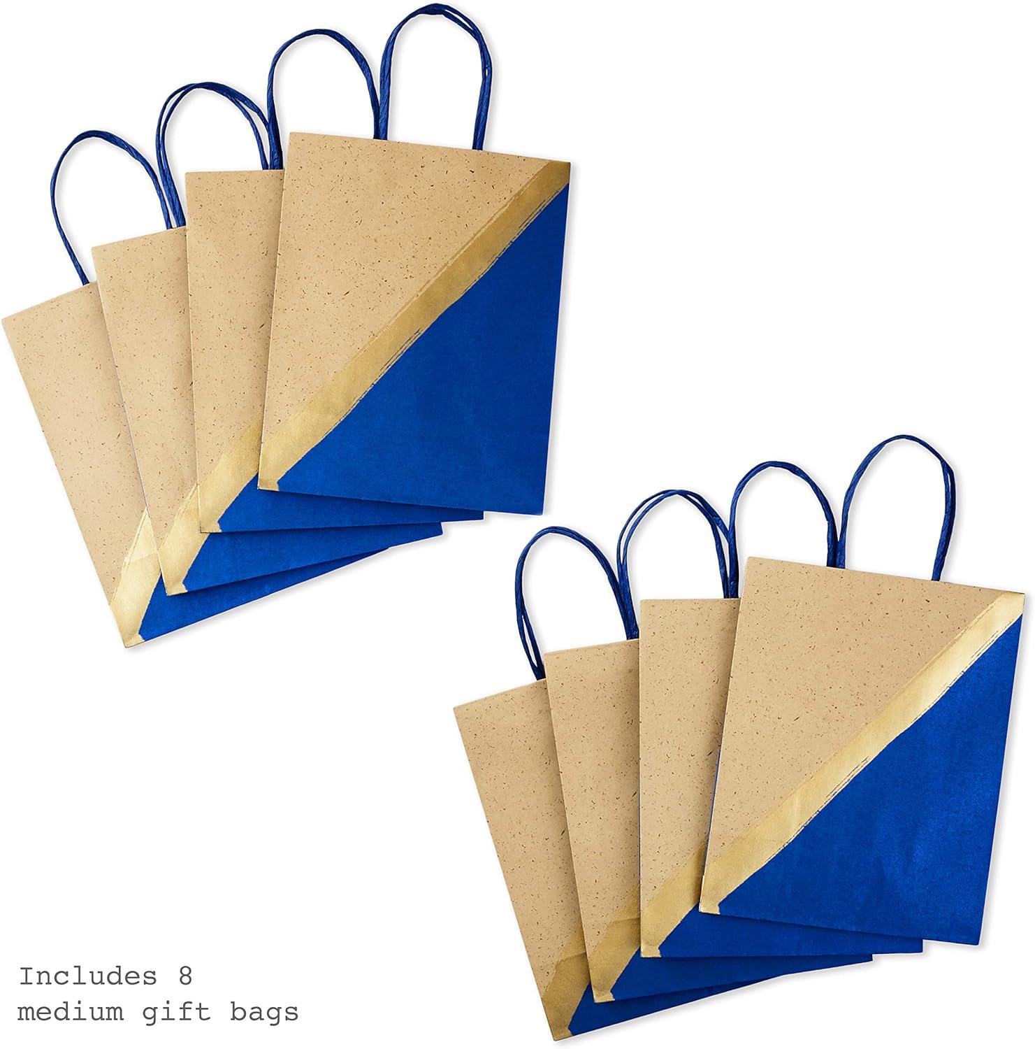 Hallmark 9″ Medium Paper Gift Bags (Pack of 8 – Blue & Kraft) for Hanukkah, Birthdays, Weddings, Father’s Day, Graduations, Baby Showers, Bridal Showers, Care Packages, May Day(Blue)