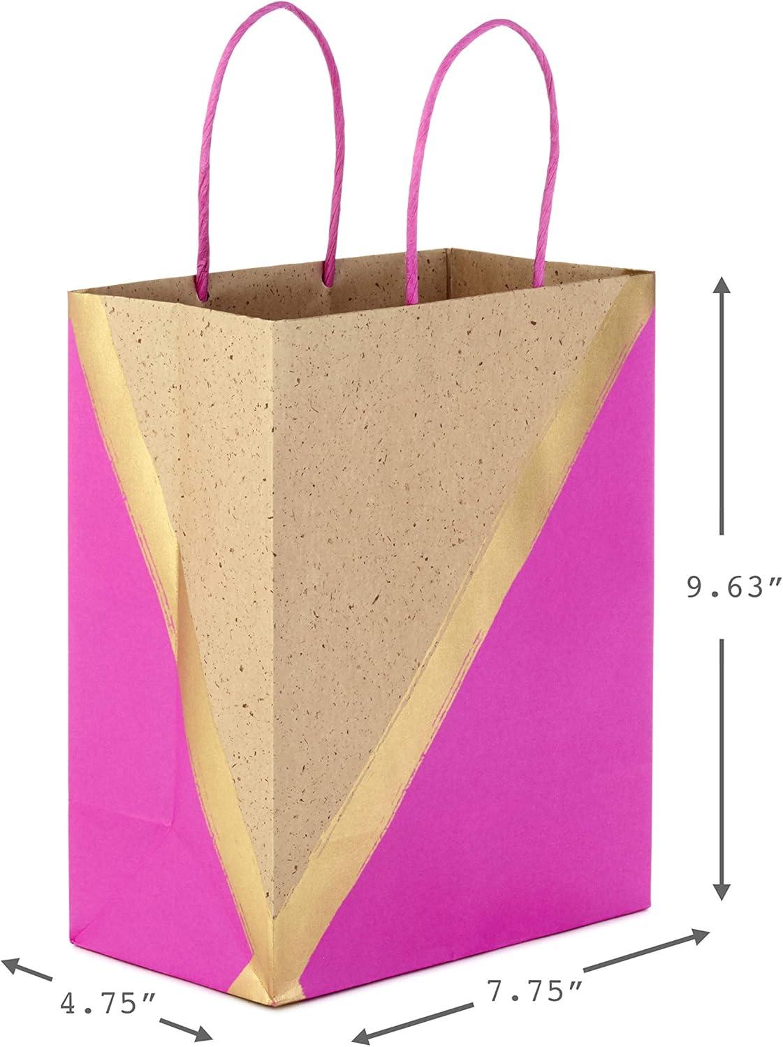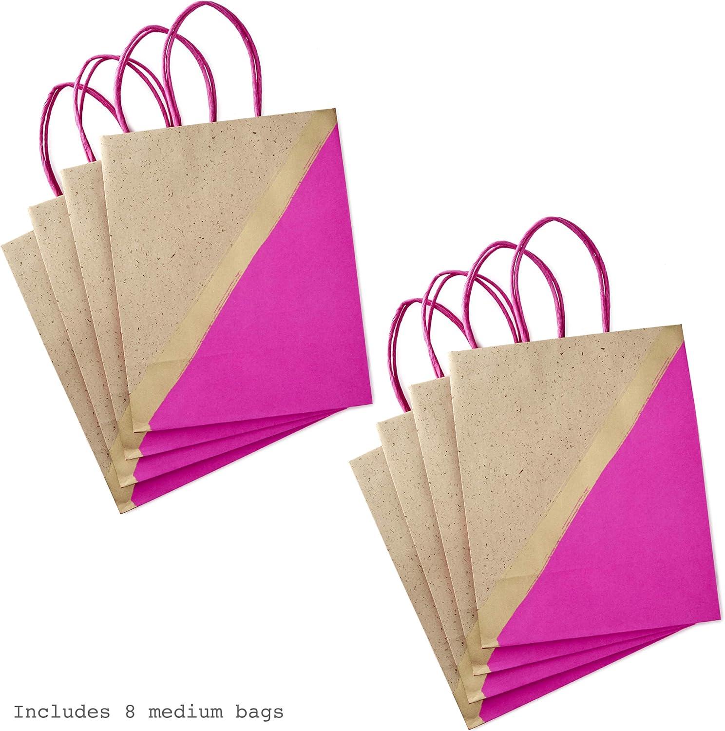 Hallmark 9″ Medium Paper Gift Bags (Pack of 8 – Blue & Kraft) for Hanukkah, Birthdays, Weddings, Father’s Day, Graduations, Baby Showers, Bridal Showers, Care Packages, May Day(Pink)