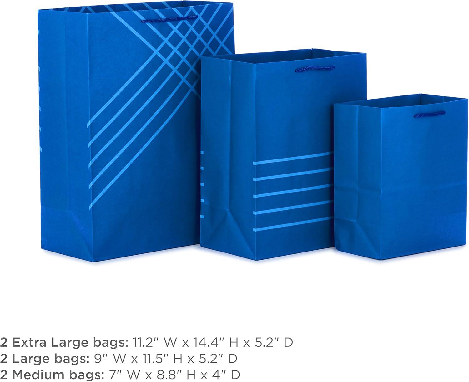 Hallmark Blue Gift Bags in Assorted Sizes (Pack of 6: 2 Medium 9″, 2 Large 11″, 2 Extra Large 14″) for Birthdays, Graduations, Fathers Day, Baby Showers, Bridal Showers, Weddings, Groomsmen Gifts,(Blue)