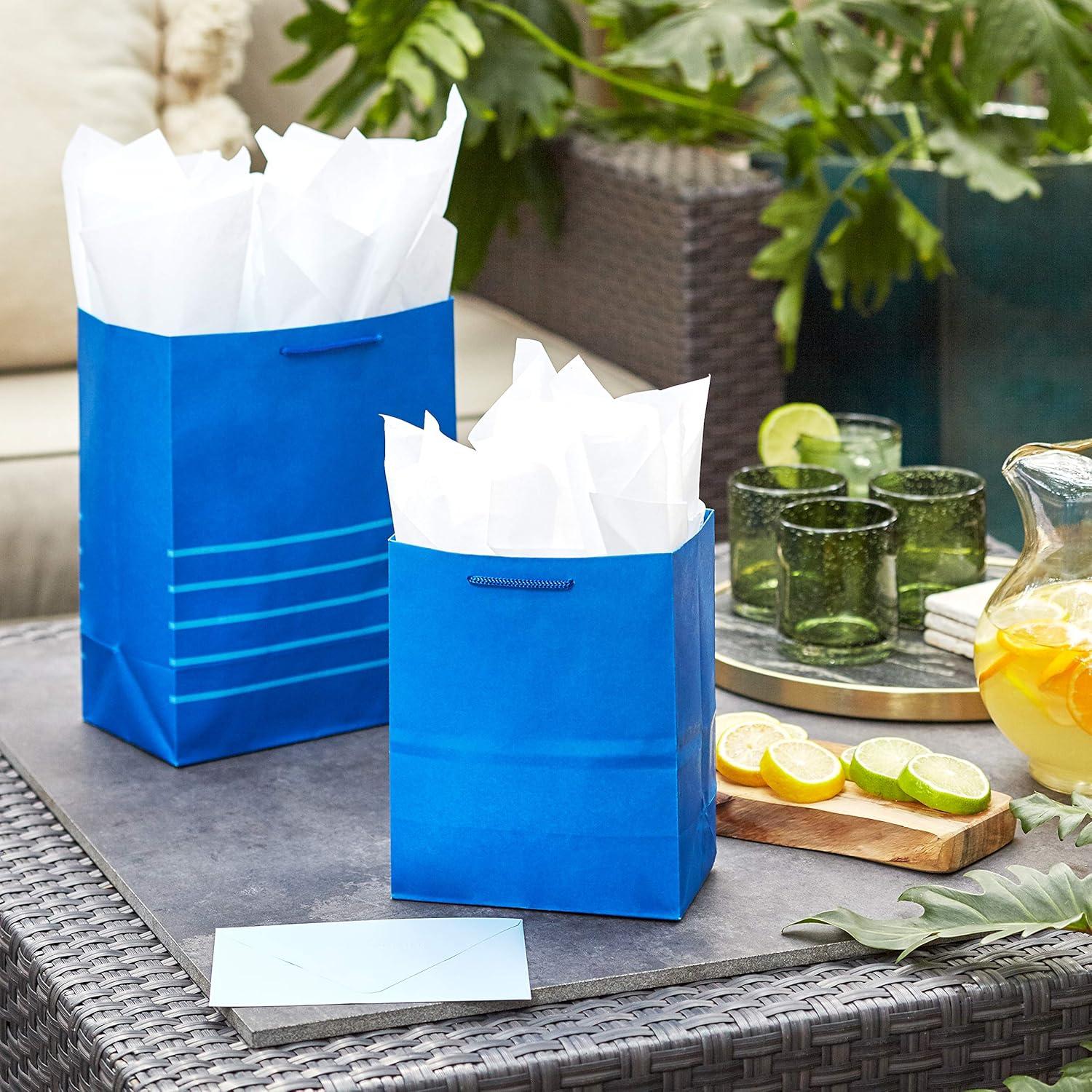 Hallmark 13″ Large Paper Gift Bags (Pack of 6 – Blue & Kraft) for Hanukkah, Birthdays, Weddings, Graduations, Father’s Day, Baby Showers, Bridal Showers(Blue)