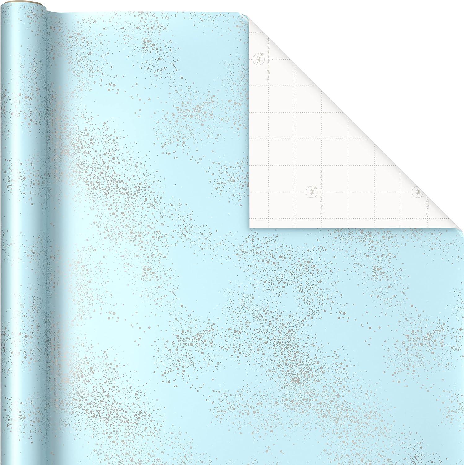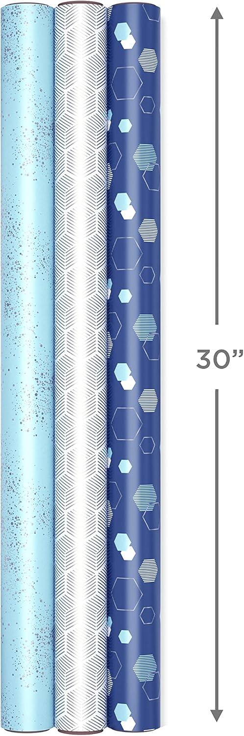 Hallmark Blue and Silver Wrapping Paper Set (3 Rolls: 90 Sq. Ft. Ttl, 10 Bows, Ribbon, Gift Tag Stickers) for Birthdays, Hanukkah, Father’s Day, Graduations, Weddings(Blue and Silver)