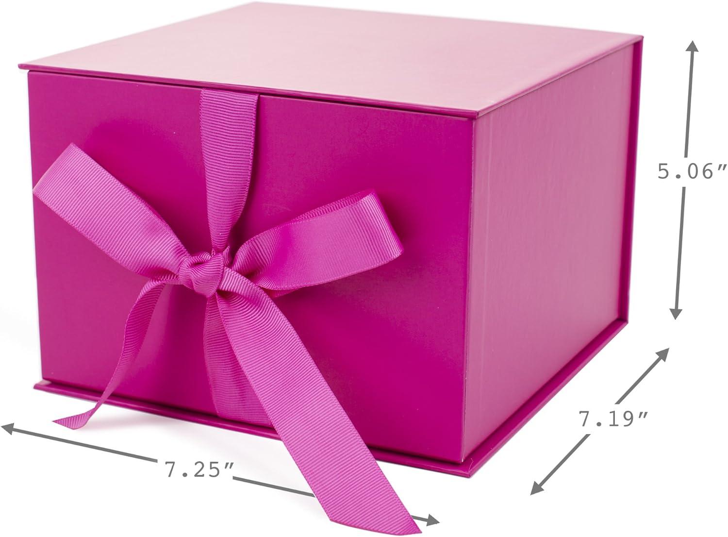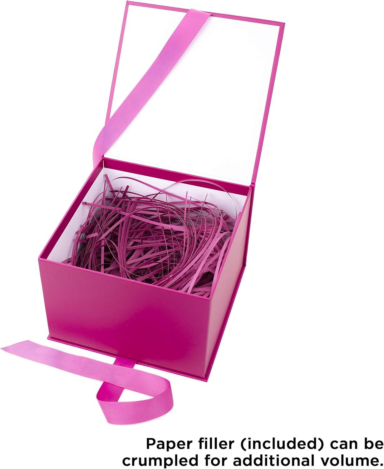 Hallmark Medium Gift Box with Lid and Shredded Paper Fill (Grey White 7 inch Box) for Weddings, Bridal Showers, Graduations, Birthdays, Bridesmaids Gifts, All Occasion(Hot Pink)