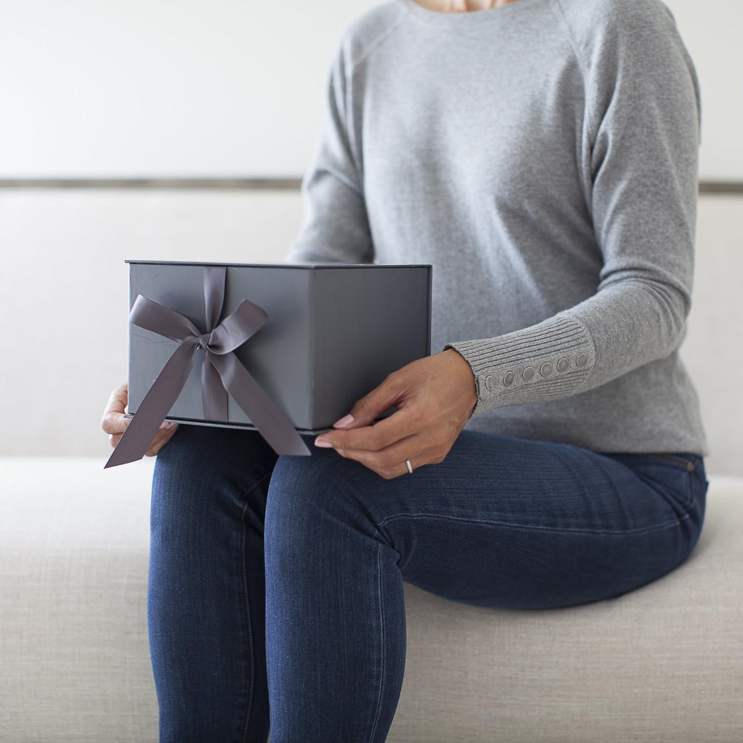 Hallmark Medium Gift Box with Lid and Shredded Paper Fill (Grey White 7 inch Box) for Weddings, Bridal Showers, Graduations, Birthdays, Bridesmaids Gifts, All Occasion(Coal)