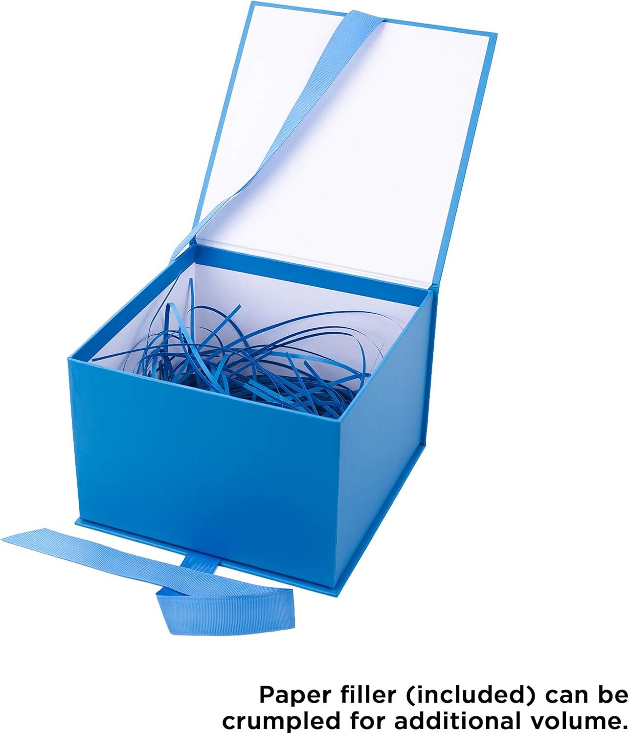 Hallmark Medium Gift Box with Lid and Shredded Paper Fill (Grey White 7 inch Box) for Weddings, Bridal Showers, Graduations, Birthdays, Bridesmaids Gifts, All Occasion(Blue)