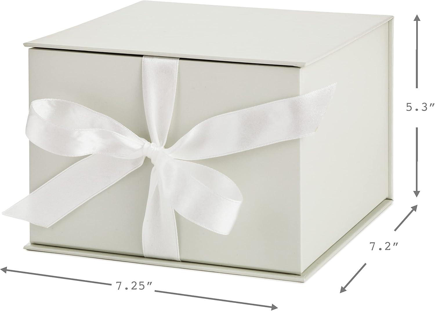 Hallmark Medium Gift Box with Lid and Shredded Paper Fill (Grey White 7 inch Box) for Weddings, Bridal Showers, Graduations, Birthdays, Bridesmaids Gifts, All Occasion(White)